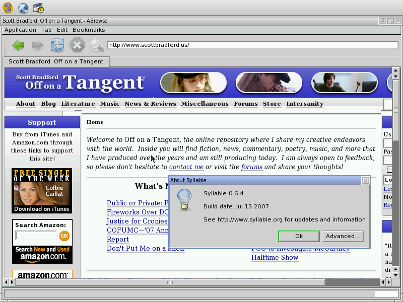 Syllable 0.6.4—Syllable is an open source project to create an operating system, loosely inspired by BeOS. It is in very early development and has limited software available, so I’m mainly running it just because I can!