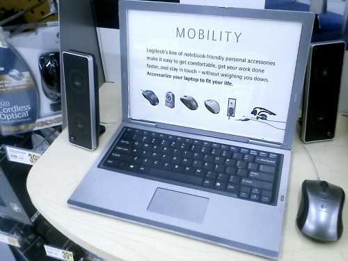 This is, without a doubt, the best two-dimensional fake laptop in the world (as seen at a local Staples store in Logitech’s display area). Somebody gets paid the big-bucks to build fake laptops like this, and I don’t know whether to laugh or cry.