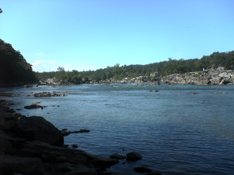 I neglected to post this photo when I took it . . . uh . . . August 9. On my first off-read bike excursion after buying my Schwinn Mesa mountain bike, I took the Cross County Trail north from Georgetown Pike into Great Falls National Park. The trail terminates at the Potomac River where the Difficult Run creek meets the Potomac.
