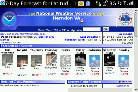 BlackBerry’s browser on the Bold is much, much, much improved over previous incarnations and—much to my surprise—I’m using it instead of Opera Mini as my primary mobile browser. It still needs some work, and I’m sure that subsequent software updates will continually improve its capability, but most web sites I throw at it work quite well. On the rare occasion that I have a problem, I just slide over to Opera Mini (which did not allow me to take screenshots, but works very well).