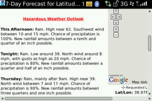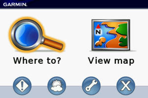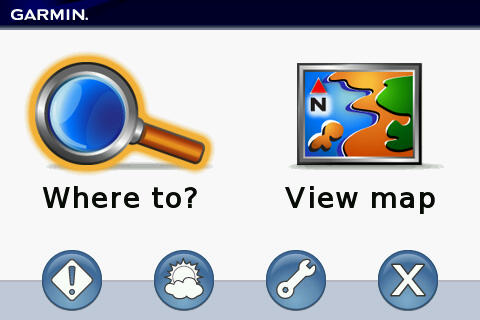 Garmin Mobile launches with a simple, intuitive menu allowing you to begin navigating to a destination (‘Where to?’) or simply to view a map of your current location (‘View map’). The application can receive local traffic reports and adjust your route accordingly (I have not experimented much with this), provide weather reports, and has several options to allow you to avoid toll roads and carpool lanes and so on.