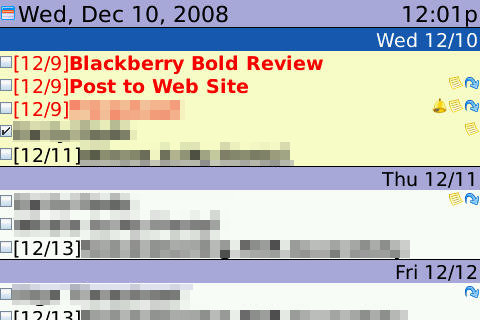 For those of us who became addicted almost a decade ago to PDAs, we now rely on our mobile devices to manage our contacts, calendars, tasks, and notes. The BlackBerry OS includes each of these functions, but they have some limitations. I am happy with the contacts manager and the notes manager, though the notes manager could use better categorization options. I am disappointed with the calendar and task managers.