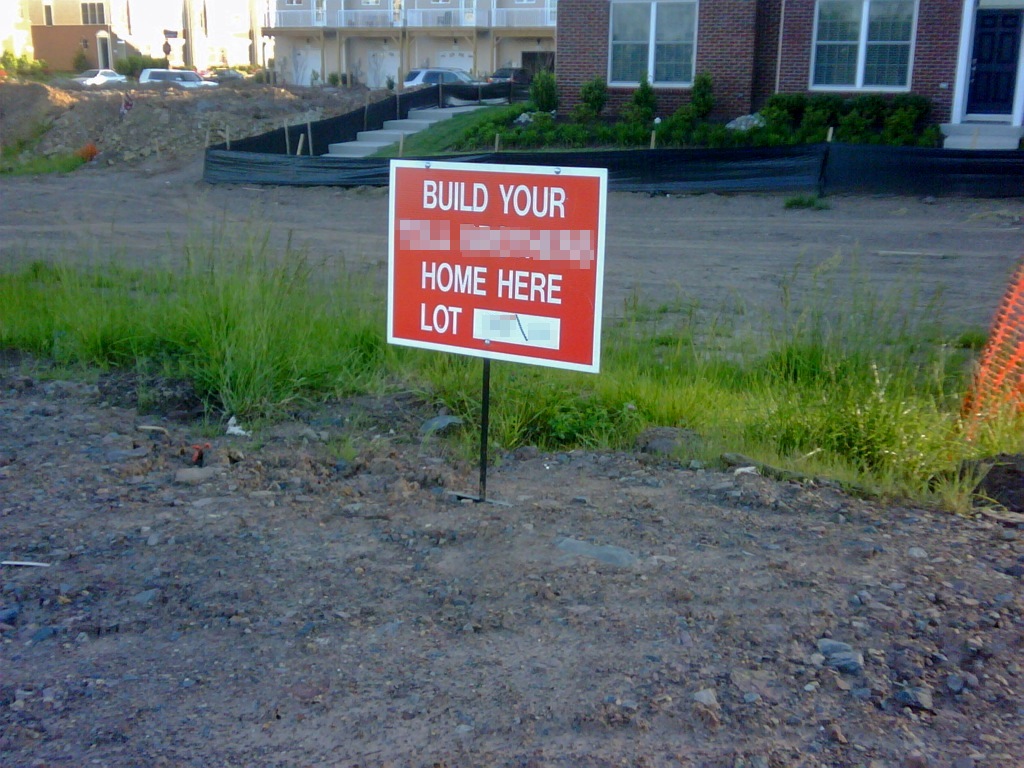 The previous entry, of course, shows the artist’s conception of what the house will look like and a floor plan. The pictures here are the offer letter, the empty lot where the house will be, and the sign marking the property. We should know whether it’s ours within a week or so.