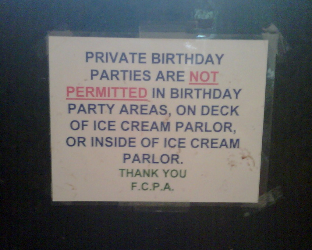 No Birthday Parties in the Birthday Party Area