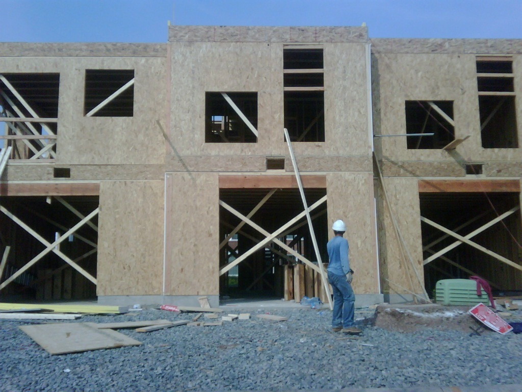 I swung by the house we are buying yesterday and, surprise, they’ve started building it! There’s wood framing for the lower two floors already in-place. Presumably the third floor will follow later ;-).
