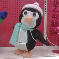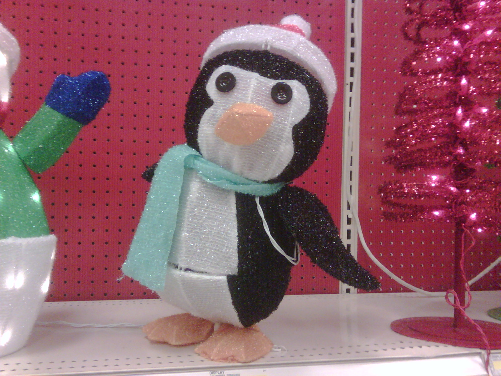 Aside from the two snow pics (1st right when it was starting to accumulate, and 2nd later in the day), I’ve also included a really scary penguin we saw at Target. Enjoy!