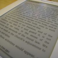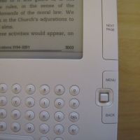 What this means is that looking at text on a true e-reader is very, very similar to looking at text on paper. You rely on ambient light, so you can’t use them in the dark but you can use them in bright sunlight. A book’s page on the Kindle 2’s screen looks basically like a book’s page in a book, except for a bit darker background. Amazon says that the upcoming Kindle has better contrast, which will be nice I guess, but the Kindle 2’s has not given me any trouble in real-world usage.