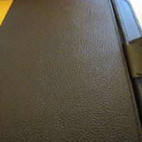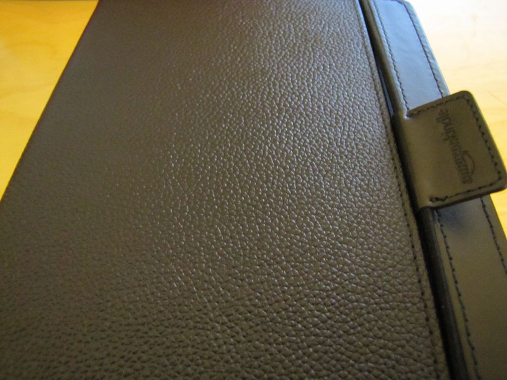 I added an Amazon-branded leather cover for my Kindle which is quite good, but way overpriced at $35. The Kindle actually snaps into the cover on the side. The cover gives the Kindle a bit more heft and protection and makes it feel even more like a physical book in the hand.