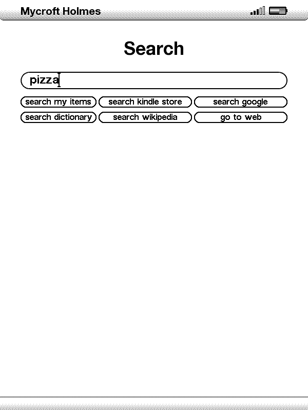 The Kindle also has a pretty decent search mechanism. From the navigation screens you can just start typing to search the device, or you can bring up the device menu and go to a more fully-functional search. You can search items on your Kindle, the Kindle store, the built-in dictionary, Google, or Wikipedia.