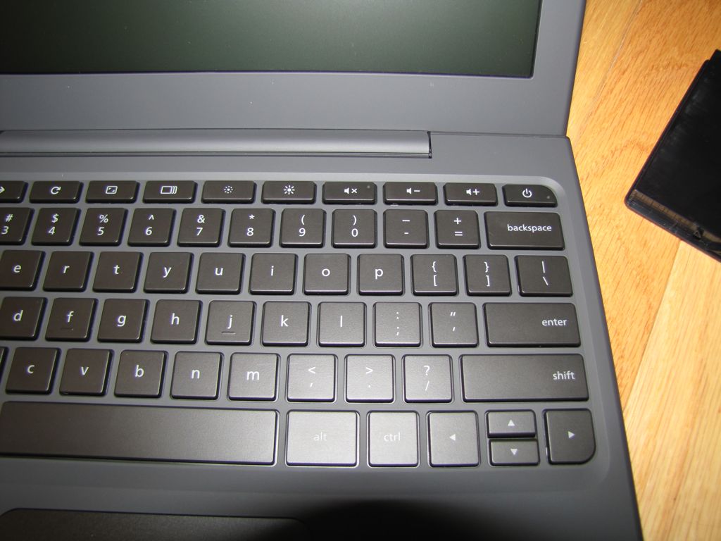 It also has a generously-sized trackpad; it’s smaller than those on recent Macs, but bigger than those on many Windows notebooks. It was initially a bit touchy and weird but after the machine updated its OS (more on that later) and I tweaked the settings a bit it got much better. My only complaint is that it does seem to get occasional spurious mouse movements and touch-clicks while I’m typing. This is likely a software problem, not a hardware problem; the same thing happens on my Mac, but only when I boot it into Windows 7 Home Premium. Improved mouse drivers in Chrome OS would probably remedy this issue. In the mean time, I’ve turned off ‘tap to click’ so I have to actually press the button (or, rather, press the bottom segment of the trackpad; this has become the bizarre norm on many Windows notebooks as well). The trackpad is not multi-touch and doesn’t seem capable of handling complex gestures, but it does detect two-finger scrolling and two-finger taps (for ‘right click’).