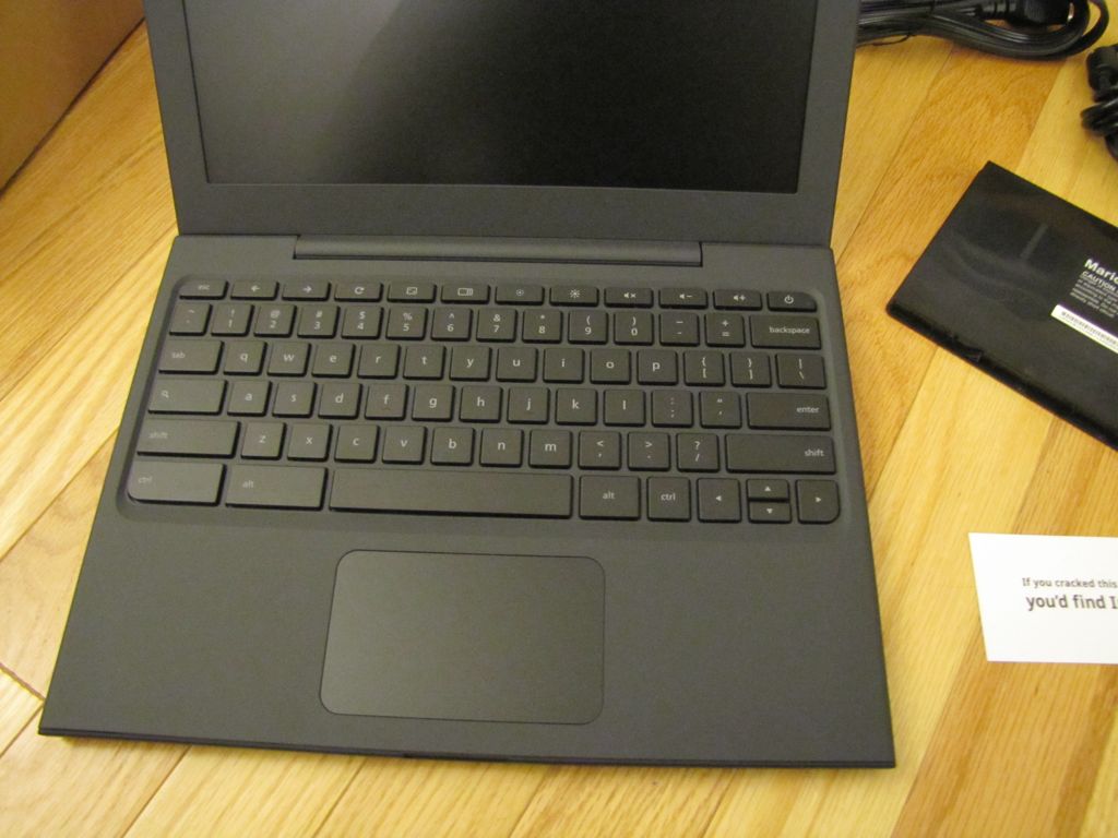 Google calls this a notebook, which is what it looks like with its roughly 12″ frame and full-size keyboard and trackpad, but in every dimension but size it’s really more of a netbook (and with Chrome OS, the term netbook seems even more fitting than on other netbooks). It comes with very few ports—a VGA display connection, one USB port, power, headphone, and SD-card stot. Like other netbooks, it runs one of Intel’s low-powered Atom processors and comes with limited on-board storage space (more on that later too).