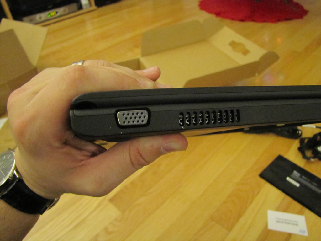 The display is a roughly-12″ widescreen display with a camera and microphone comfortably nestled in the usual place in the top bezel. The screen has a pretty wide viewing angle and everything looks as crisp and clear as I would expect from a low-end notebook. I haven’t spent much time with the camera, but it seems like it’ll do a fine job for basic video chat. The on-board speakers are nothing to write home about, but you can’t expect much from a notebook in this regard anyway (especially at the low end). They do the job, although a bit more volume would be nice. The whole machine feels very light; much lighter than my MacBook Pro and only very slightly heavier than the EeePC.