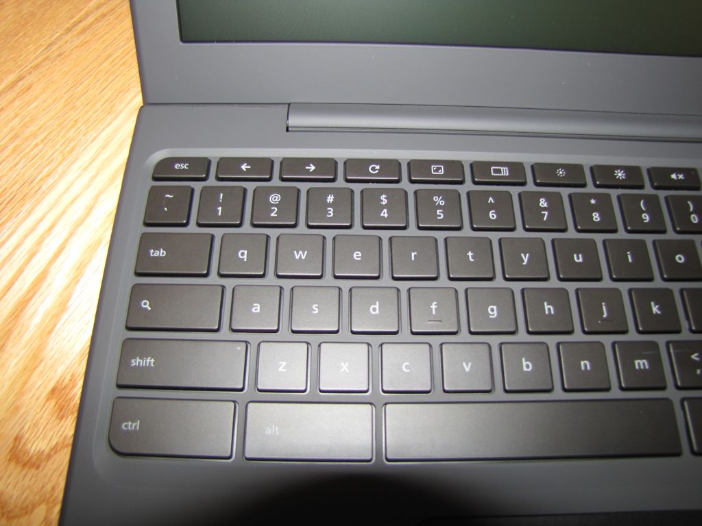 I’m not sure I’d go quite that far, but it is a good keyboard. The main letter and punctuation keys are exactly where you’d expect, and my fingers fall naturally exactly where they ought to. I had to adjust a bit to the up and down arrow keys sharing the space of one normal key, and to the over-sized ctrl and alt keys, but none of these posed a real problem. Because it’s built for browsing, the caps-lock key has been replaced with a search key (though its function can be changed back to caps-lock in the settings). Also, the function key row has been replaced with the back, forward, and refresh browser controls, a ‘full screen’ button, window switcher, brightness controls, volume controls, and the power button.