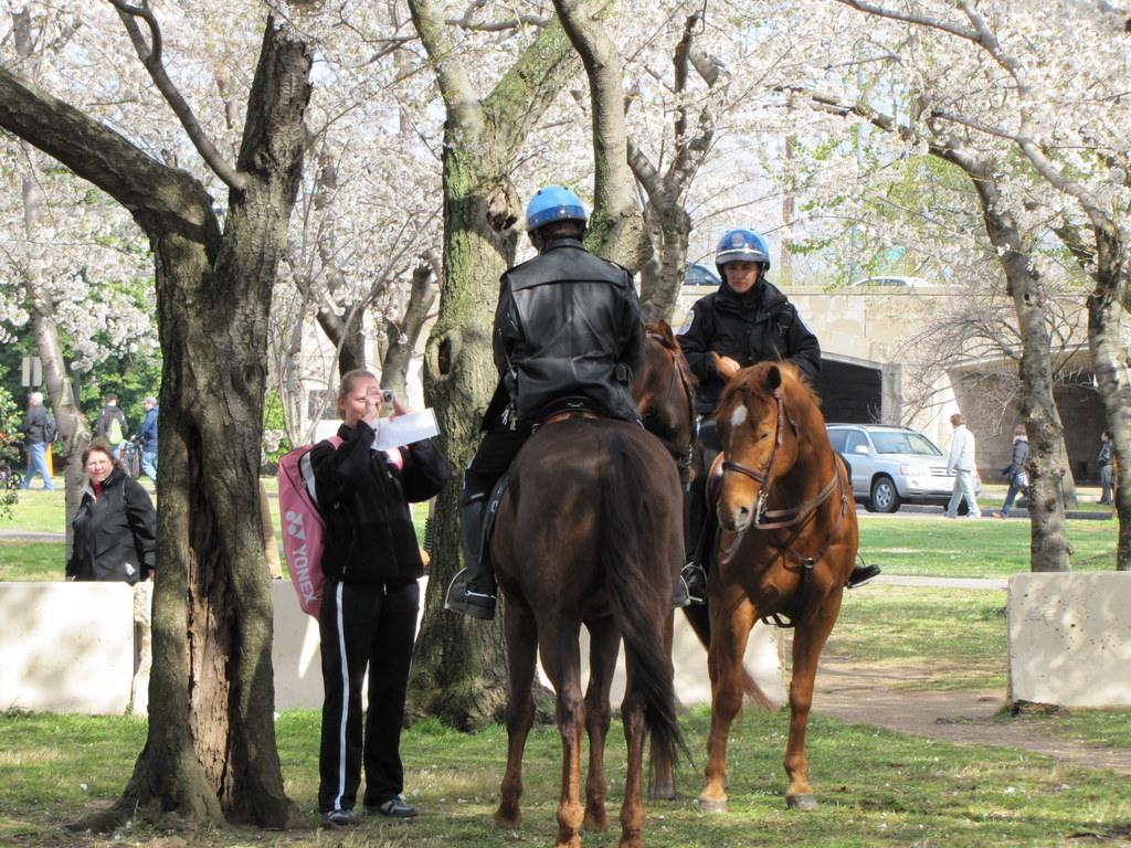 My sister Kristen came up to visit for the weekend. On Friday we went to Joshua Hoover’s great reception down at Carbon in Washington, DC. Then, yesterday afternoon (Saturday), we went down to Hains Point and the Tidal Basin ostensibly to see the cherry blossoms. Of course, one cherry blossom looks the same as any other as far as I’m concerned, but whatever.