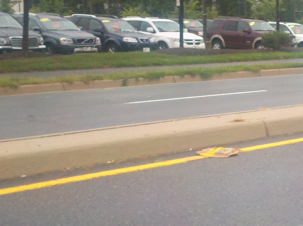 In the midst of a bunch of serious works of time-consuming writing, here are a bunch of random photos I’ve taken over the last month or two on my phone. My favorite is the derelict hat, left sitting on a highway, that the always-impressive professionals at the Virginia Department of Transportation simply painted right over instead of, you know, picking it up and throwing it away.
