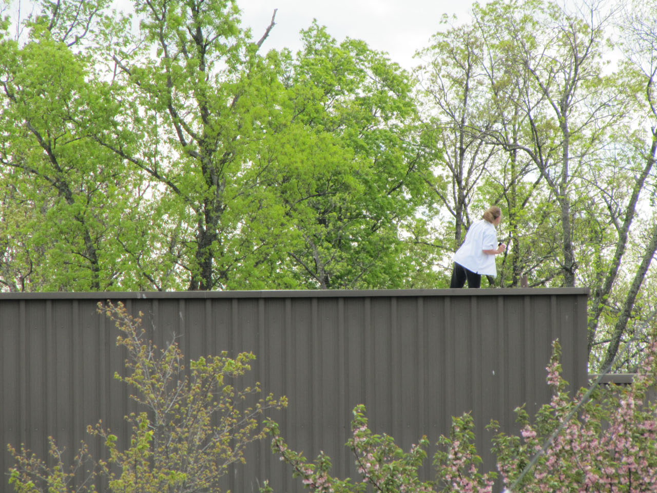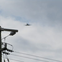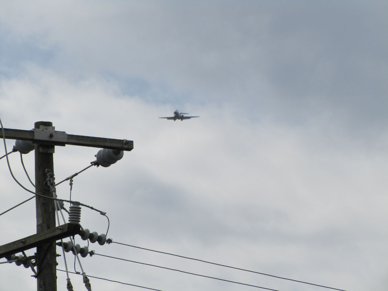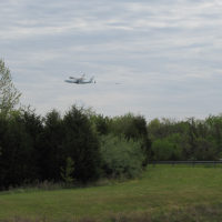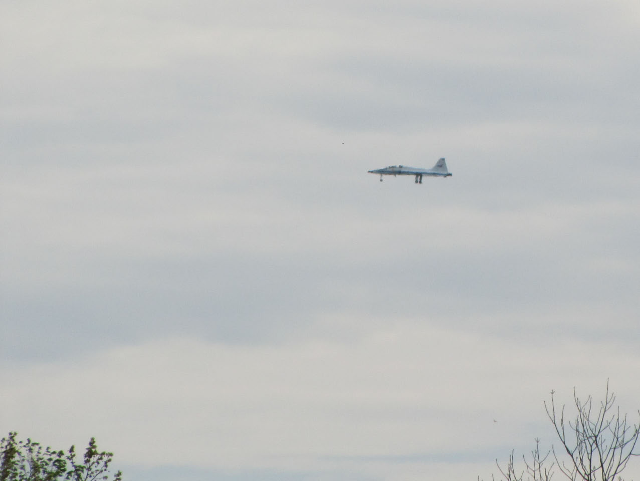I just barely caught the first fly-by, since I wasn’t completely prepared, then took some random shots of my surroundings while I waited for them to finish buzzing the rest of the metro region. I got some good, clear shots of the second fly-by. For the third and final fly-by, the actual landing approach, I put the camera down and just watched it. Very cool stuff. Photos below. . . .