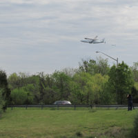 Flying atop one of NASA’s Shuttle Carrier Aircraft (a modified Boeing 747) and flanked by a NASA T-38 trainer (erroneously referred to by the local media as a ‘fighter escort’), the craft made two fly-bys at Dulles before coming in for a landing. This is quite possibly the last time Discovery will ever fly.