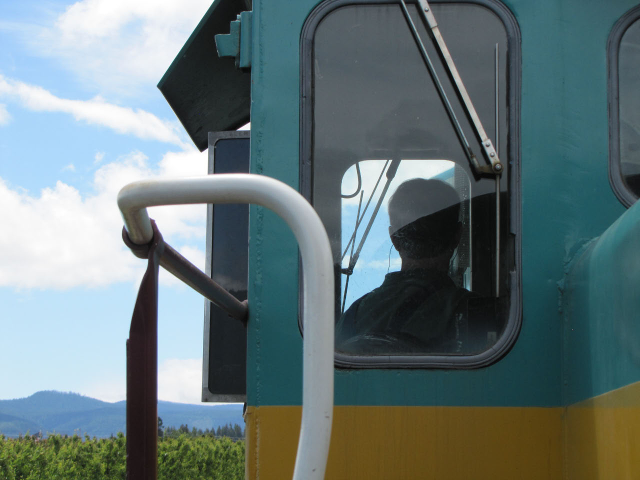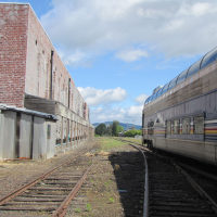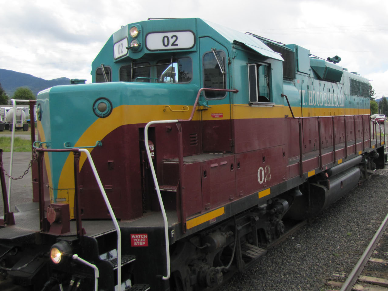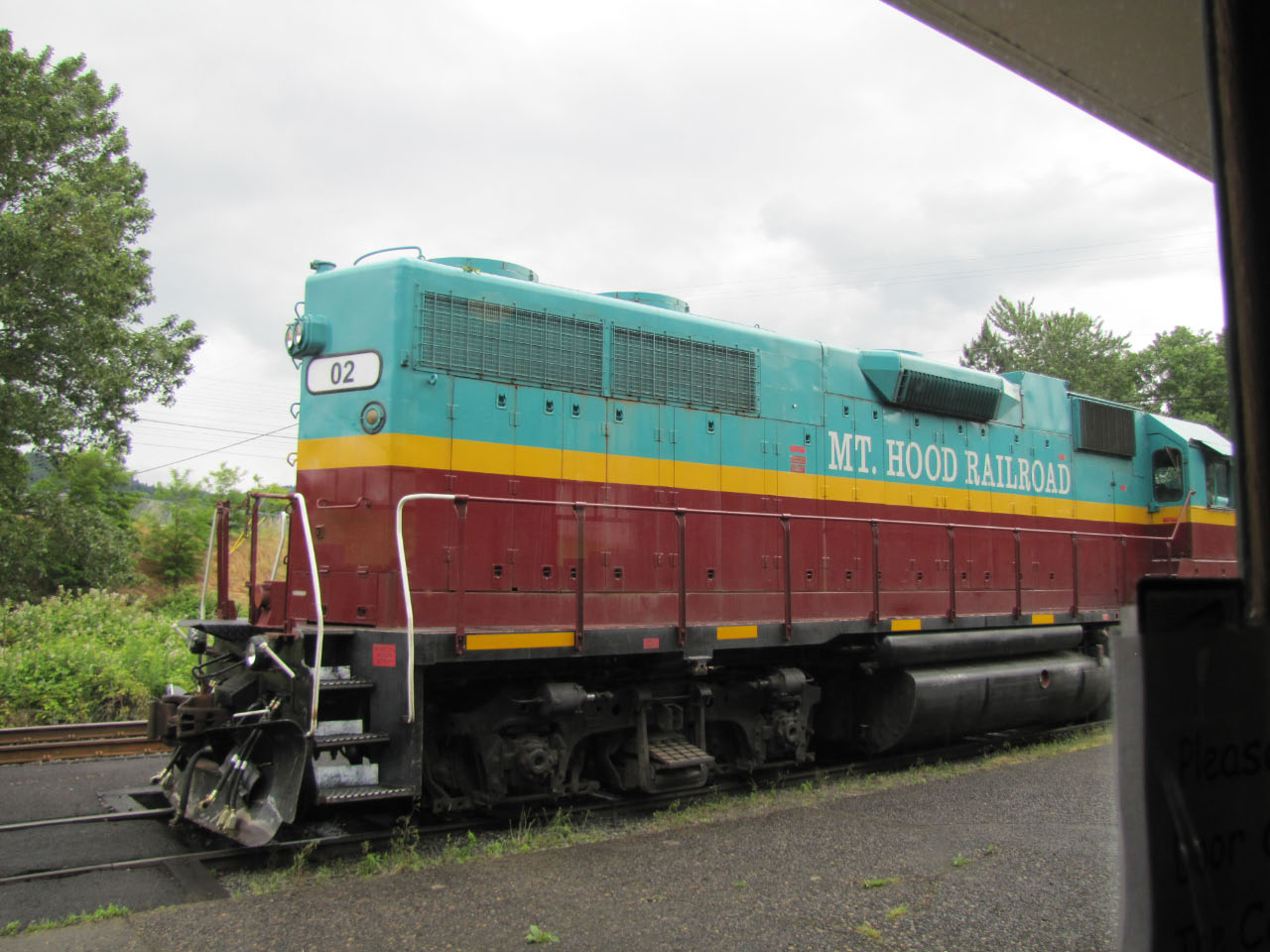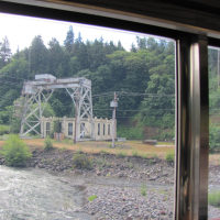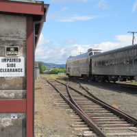 The historic Mount Hood Railroad runs about twenty miles south from Hood River, Oregon—a mid-sized town nestled against the Columbia River—to the tiny town of Parkdale, Oregon, almost in the shadow of Mount Hood. Along the way you pass through one of only five switchbacks still in-use across the United States. Built in 1906 and 1909 the line served commercial traffic in the area until Union Pacific threatened to shut it down in 1987, at which point it was purchased by private investors. It continues operation primarily as a tourist line, although it still serves a handful of small commercial customers. Although the weather was quite overcast, we still got a good look at some of the local sights.