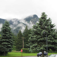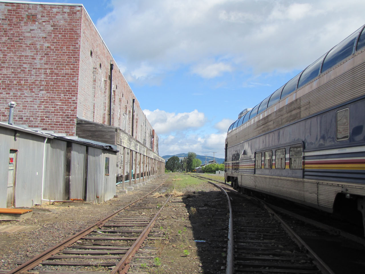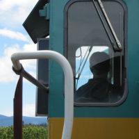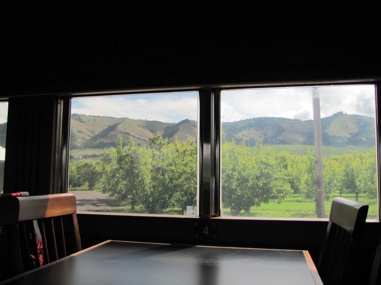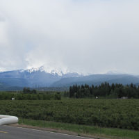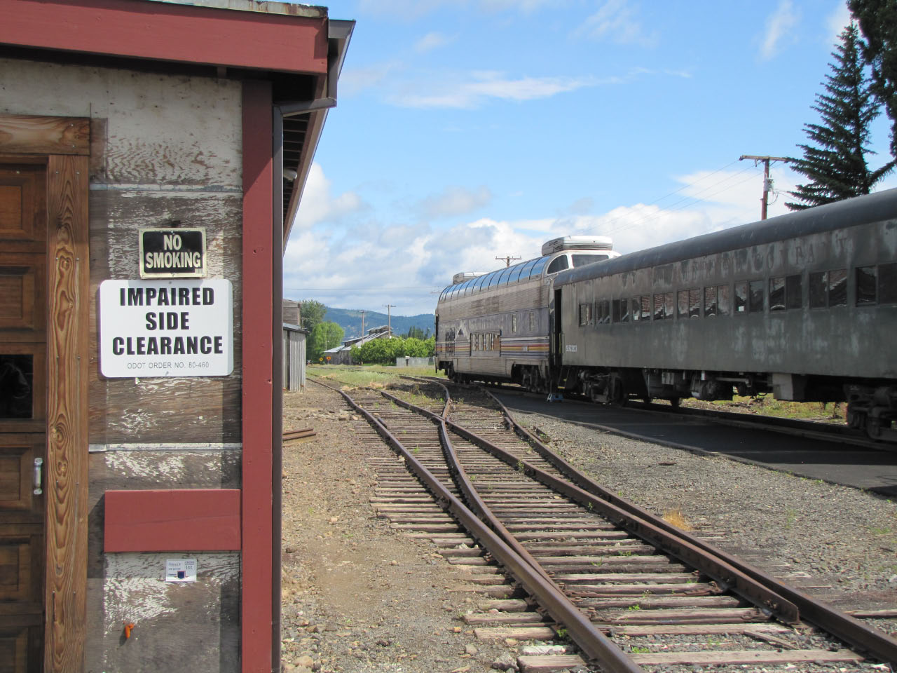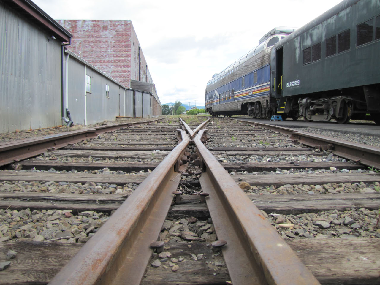 The historic Mount Hood Railroad runs about twenty miles south from Hood River, Oregon—a mid-sized town nestled against the Columbia River—to the tiny town of Parkdale, Oregon, almost in the shadow of Mount Hood. Along the way you pass through one of only five switchbacks still in-use across the United States. Built in 1906 and 1909 the line served commercial traffic in the area until Union Pacific threatened to shut it down in 1987, at which point it was purchased by private investors. It continues operation primarily as a tourist line, although it still serves a handful of small commercial customers. Although the weather was quite overcast, we still got a good look at some of the local sights.