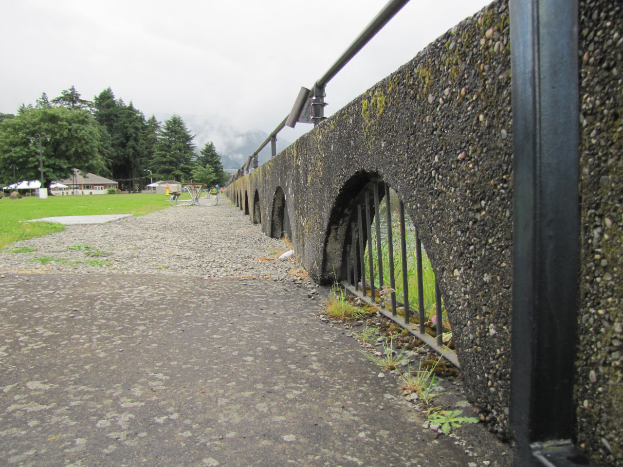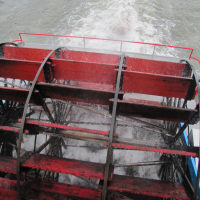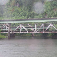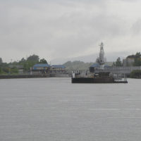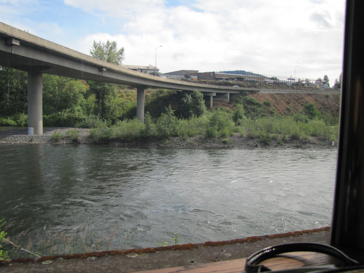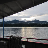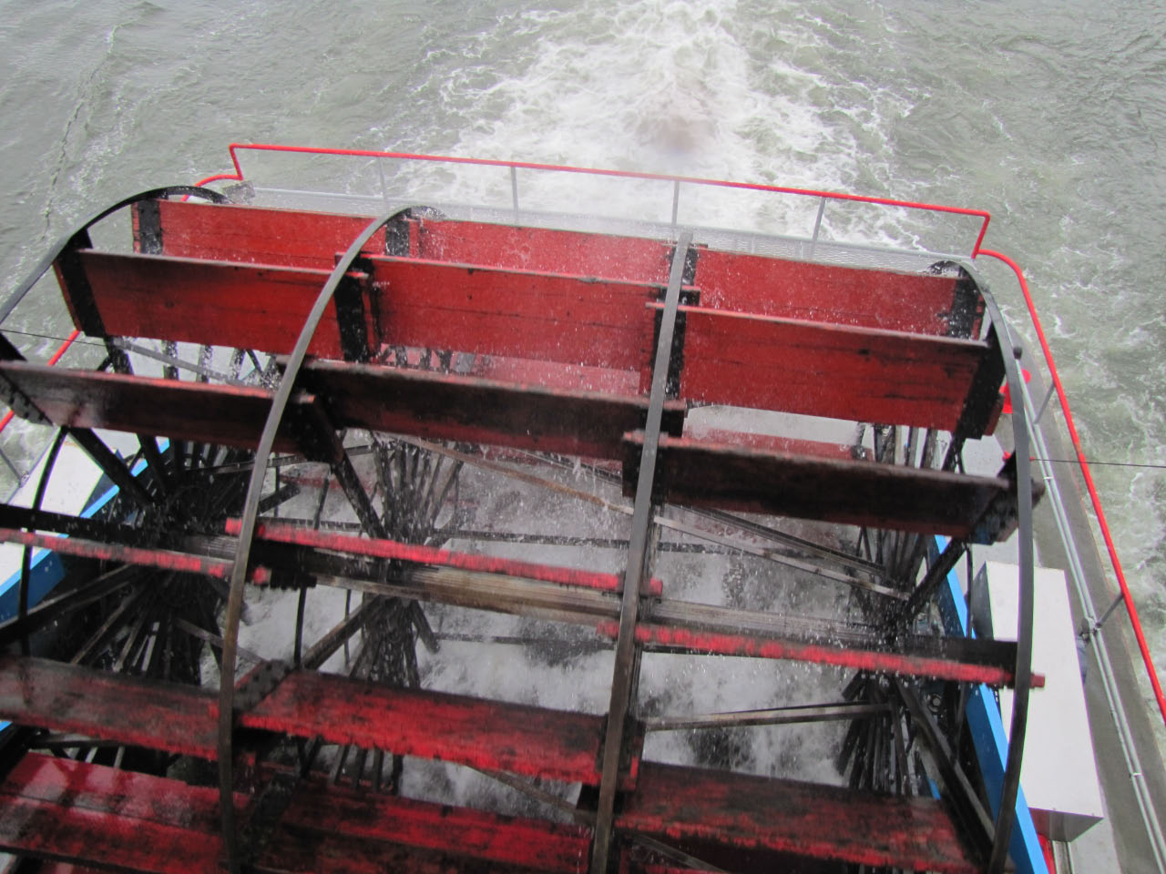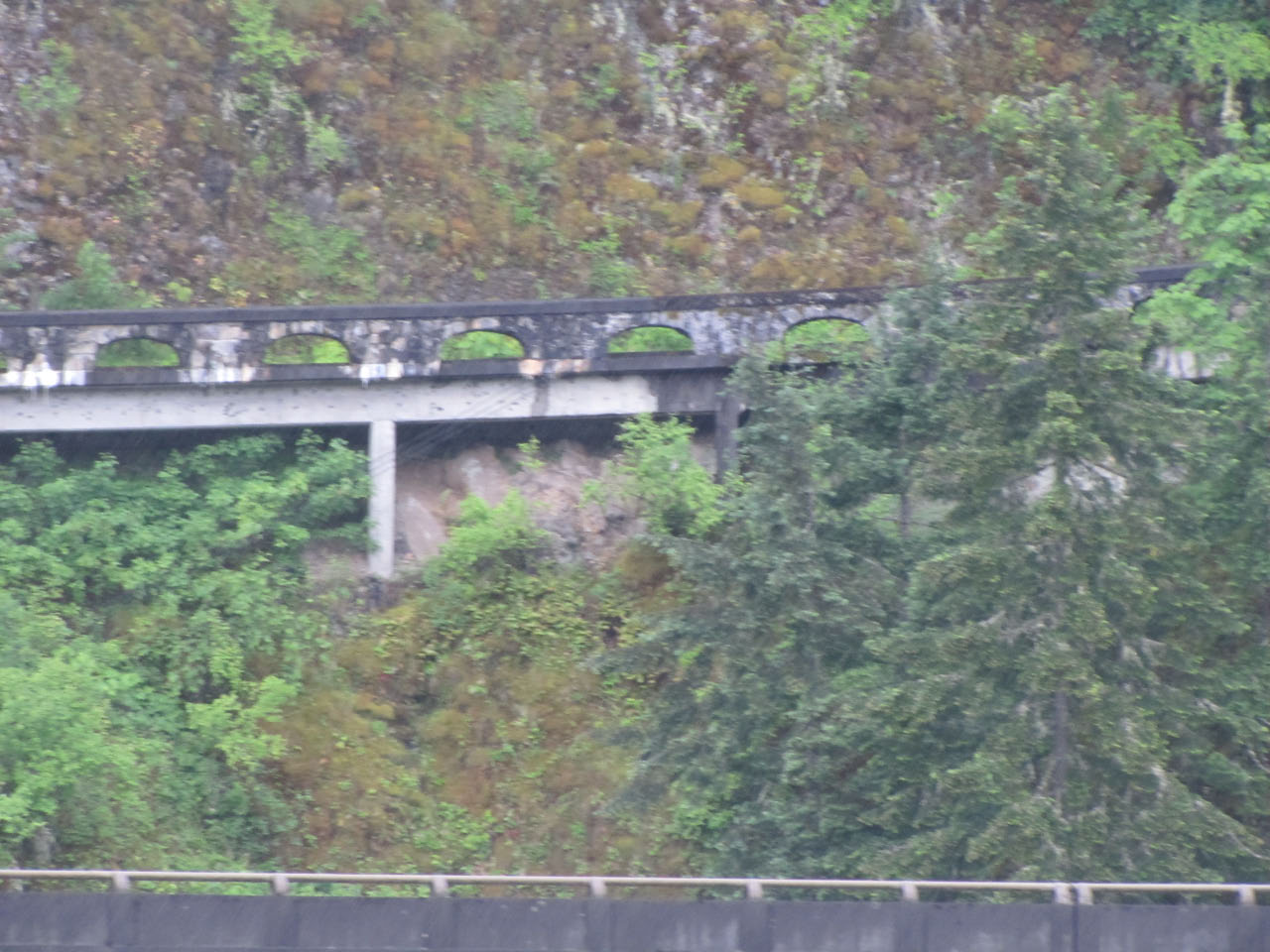 Then, after a rest back at the house, we drove out to the town of Cascade Locks, Oregon, to board the Columbia Gorge sternwheeler for a dinner cruise. The food was okay, but the views of the cloud-covered Columbia Gorge (and a different angle on the Bonneville Dam) were pretty impressive.