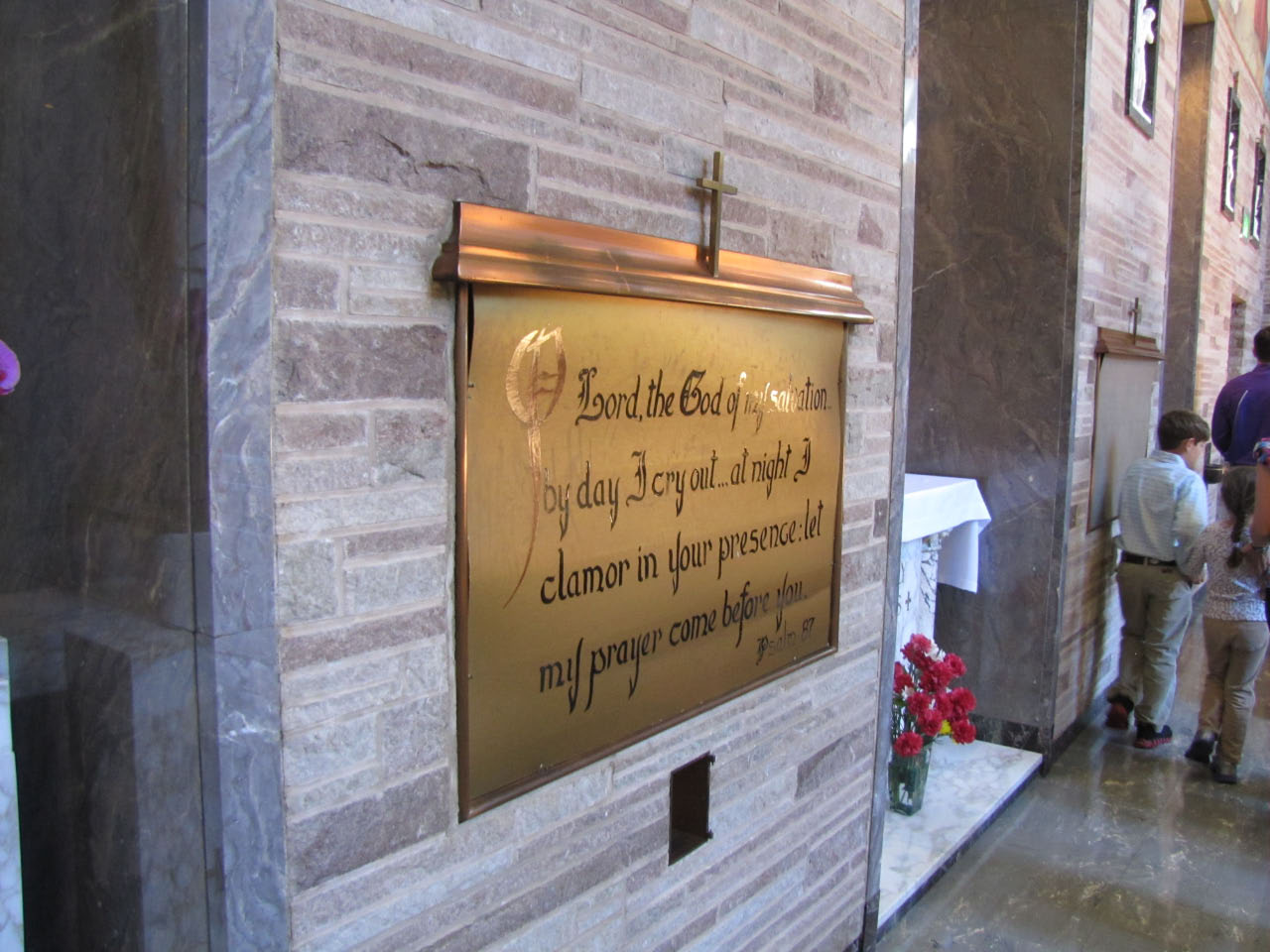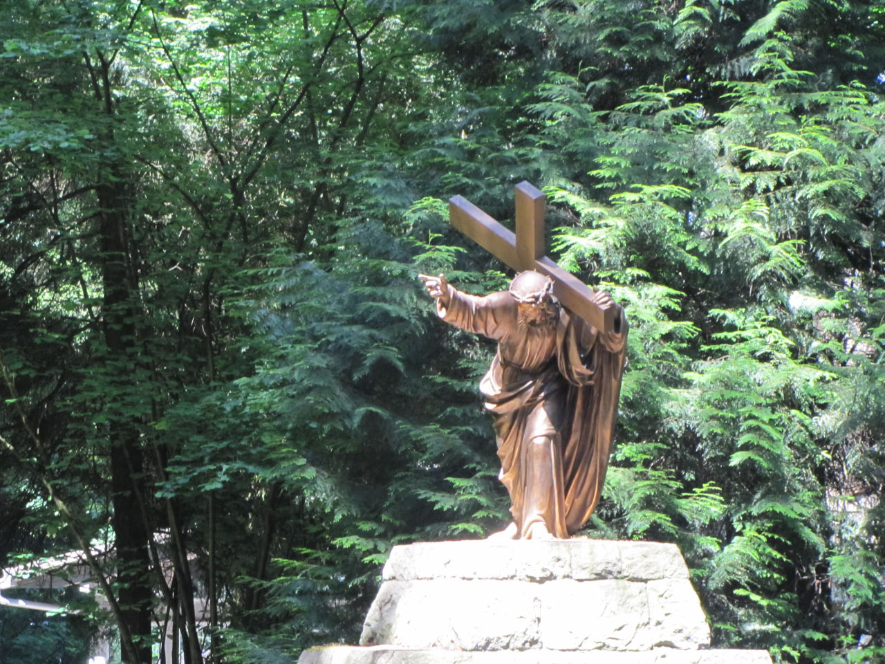 We attended Sunday Mass in the Chapel of Mary, and afterwards went on a walking tour of the Grotto grounds. It is a really beautiful place, filled with Catholic statues, shrines, artwork, and more. You’ll find many photos from our excursion below.