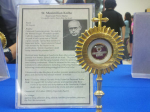 In Catholic tradition, we recognize three classes of relics. First-class relics are any items directly associated with Christ’s life (e.g., pieces of the true cross), or the physical remains of a saint (e.g., bone fragments, hair). Second-class relics are items that a saint wore or used regularly (e.g., a cloak, a crucifix, a book). A third-class relic is an object that has been touched to a first or second class relic, which makes it possible for millions of Catholics to have their own relics for private veneration and prayer. The photograph above is of a first-class relic of my own Confirmation saint, Saint Maximilian Kolbe, whose feast day happens to be today. It is a small piece of hair from his head. This relic was part of an exposition of sacred relics that visited my parish last month, and I was able to touch my own Saint Maximilian medal to it, which makes it a third-class relic.