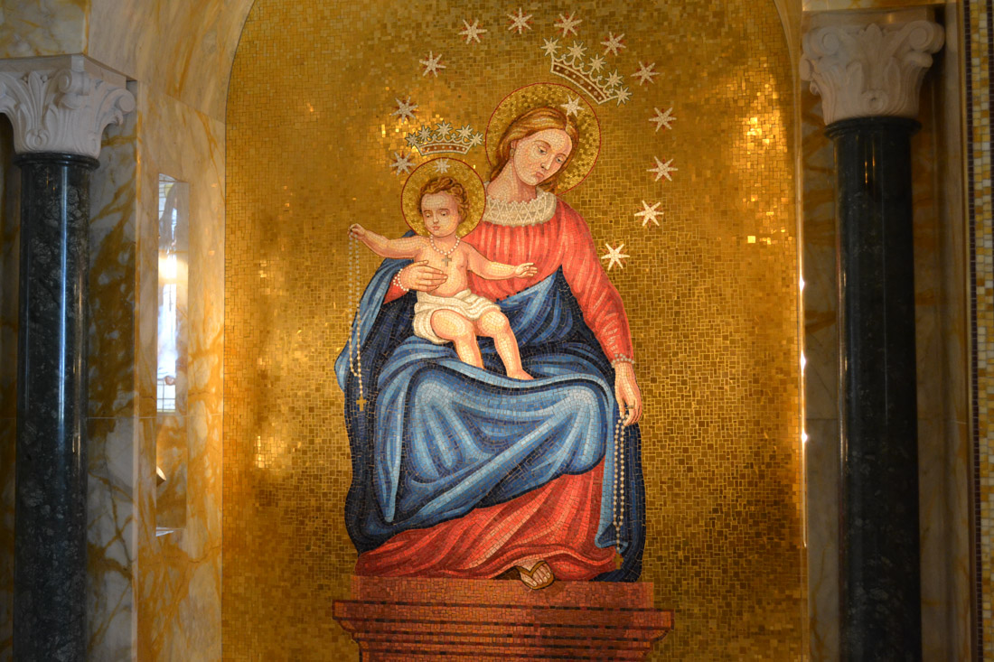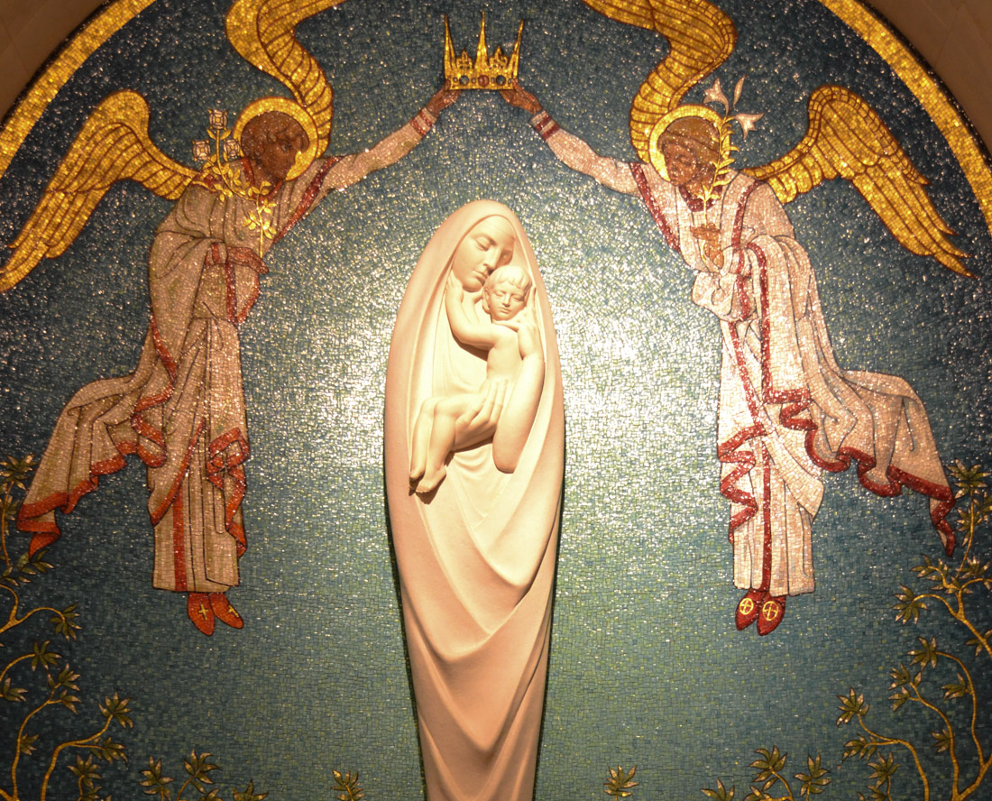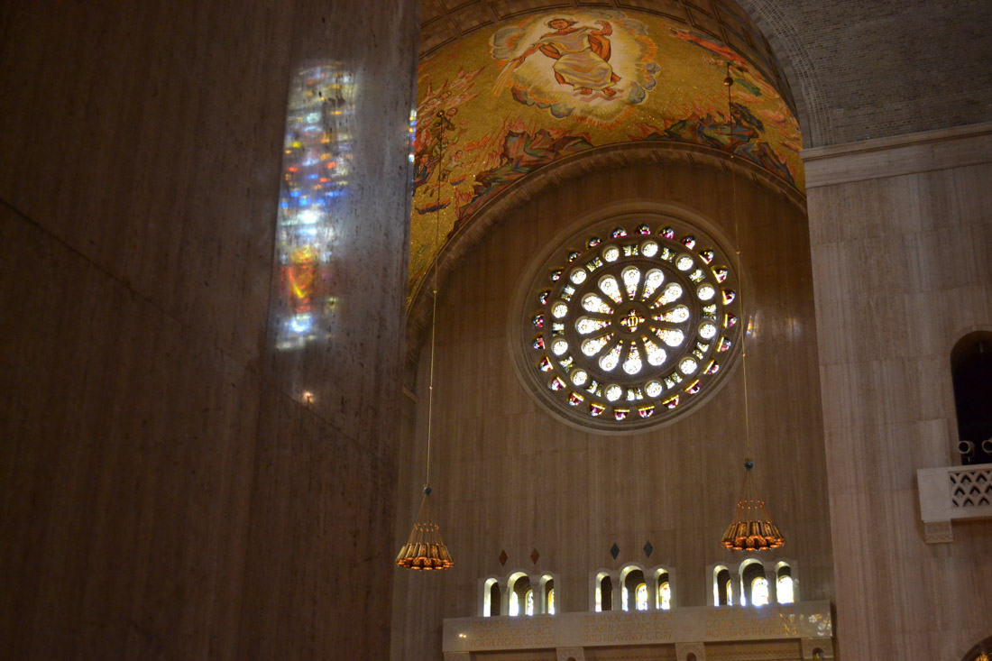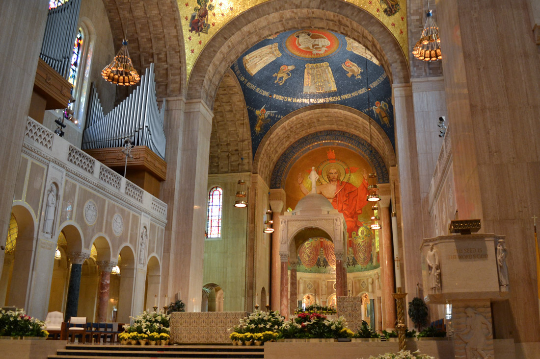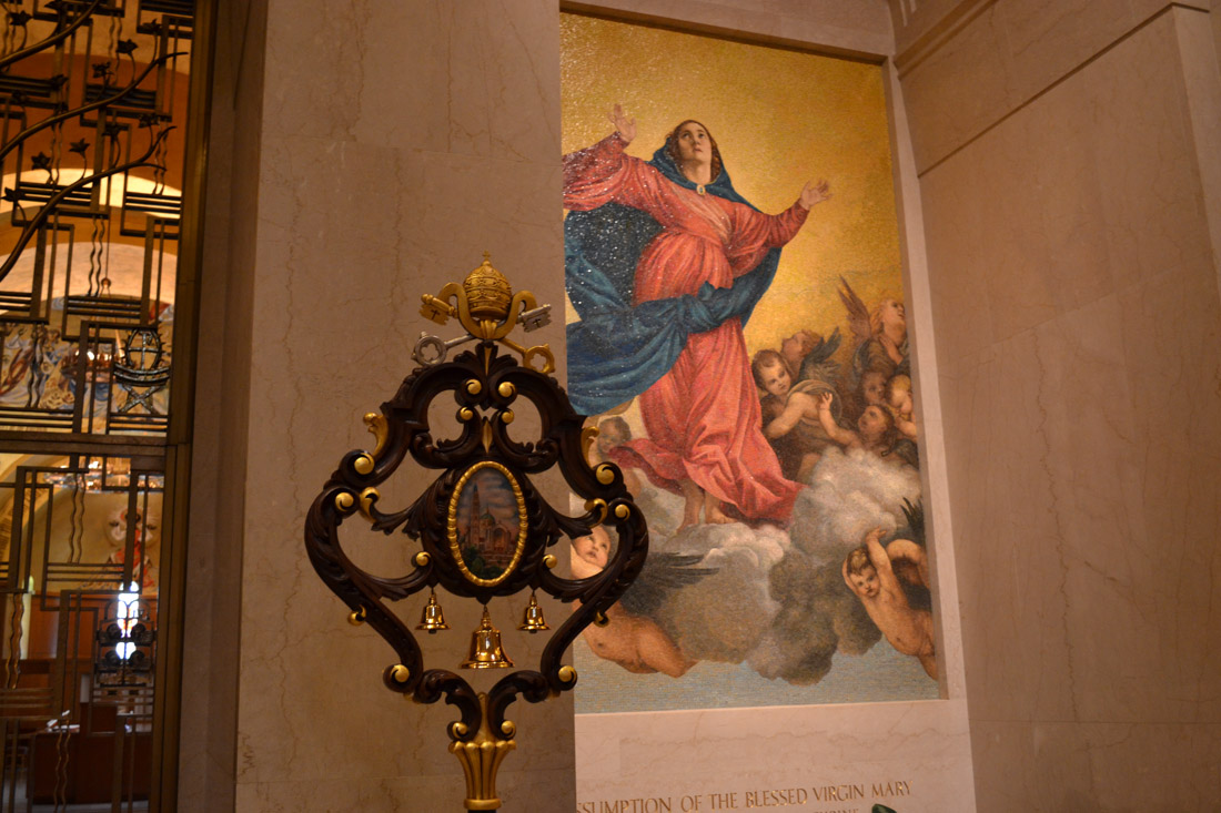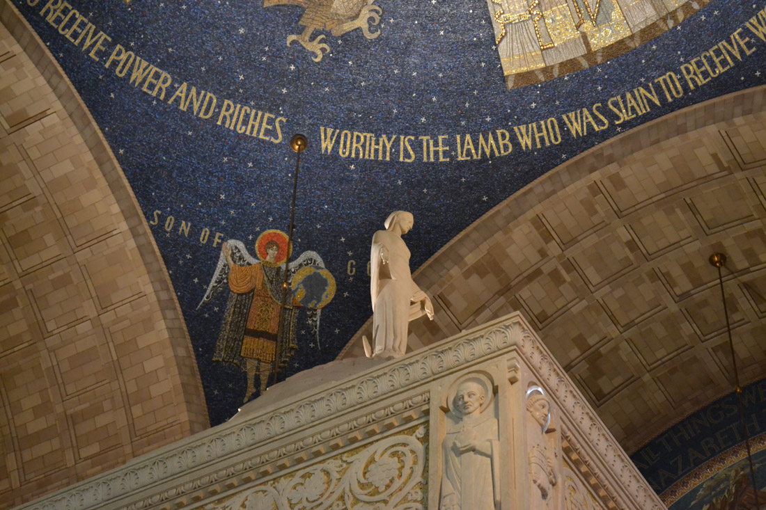 Pope Saint Pius X approved the building of a U.S. national shrine in 1913, and construction began in 1920. The crypt level was finished in 1931, and the upper church was completed (and the entire shrine dedicated) in 1959. Blessed Pope John Paul II declared the shrine a minor basilica in 1990. Today, it is home to over seventy chapels and oratories, and houses countless gorgeous mosaics and statues—predominantly dedicated to the Blessed Virgin Mary under her various titles and patronages.