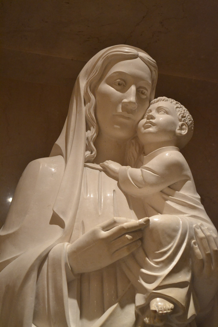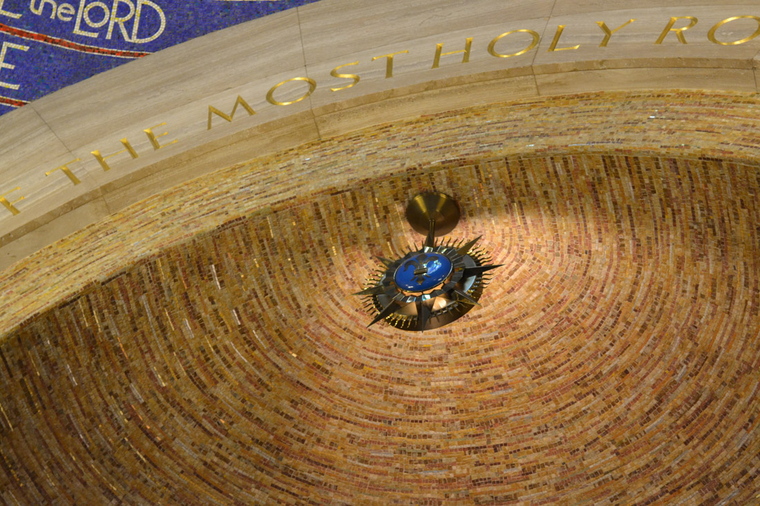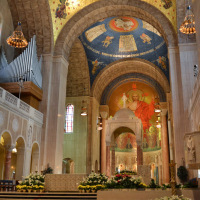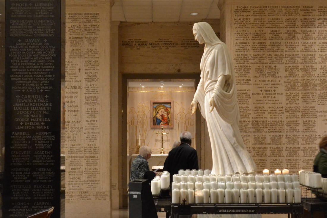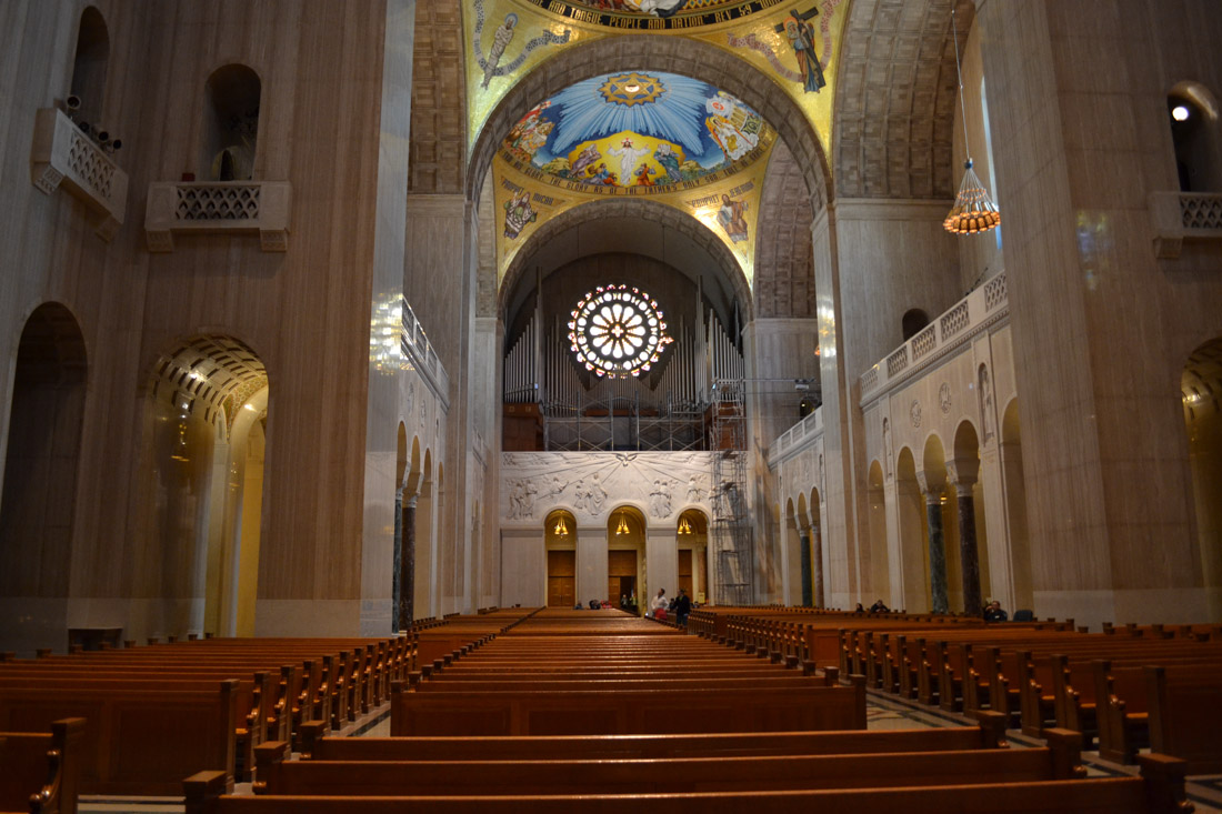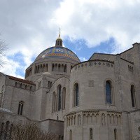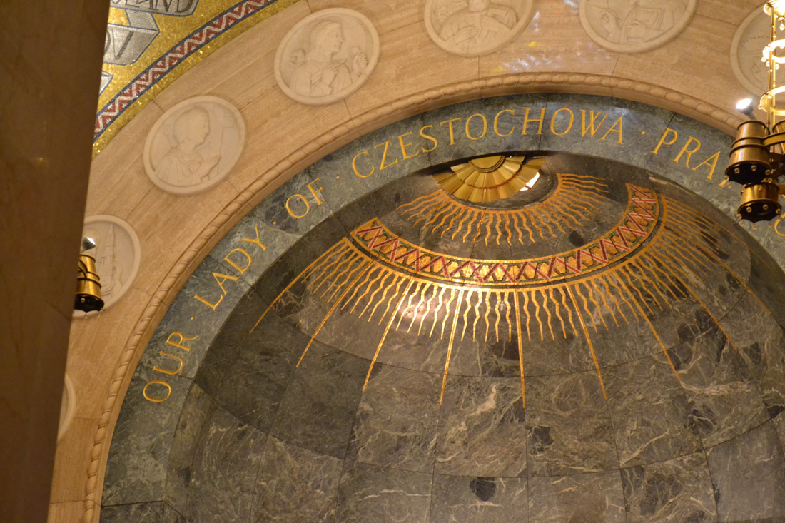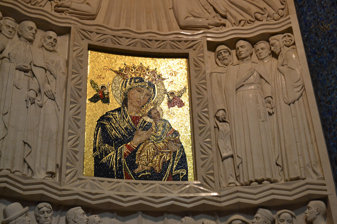 Pope Saint Pius X approved the building of a U.S. national shrine in 1913, and construction began in 1920. The crypt level was finished in 1931, and the upper church was completed (and the entire shrine dedicated) in 1959. Blessed Pope John Paul II declared the shrine a minor basilica in 1990. Today, it is home to over seventy chapels and oratories, and houses countless gorgeous mosaics and statues—predominantly dedicated to the Blessed Virgin Mary under her various titles and patronages.