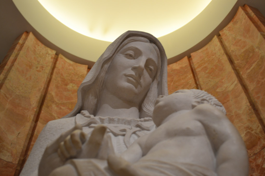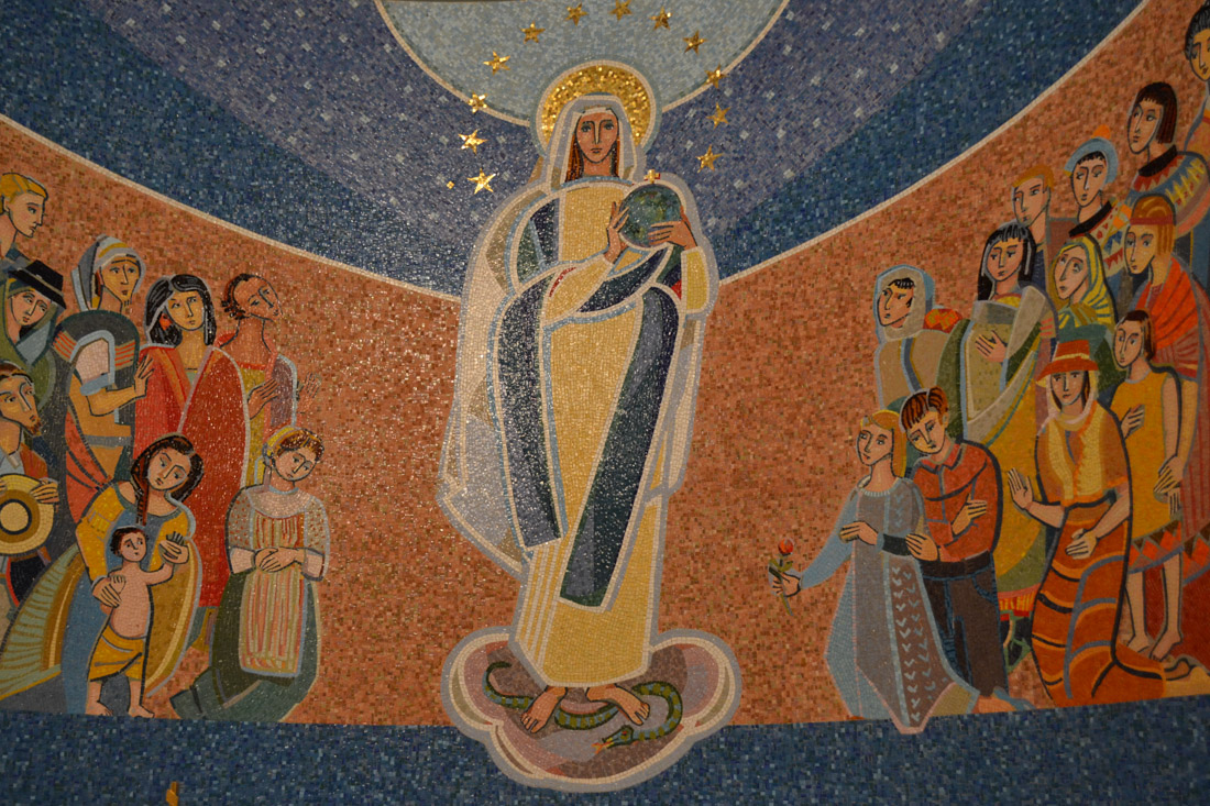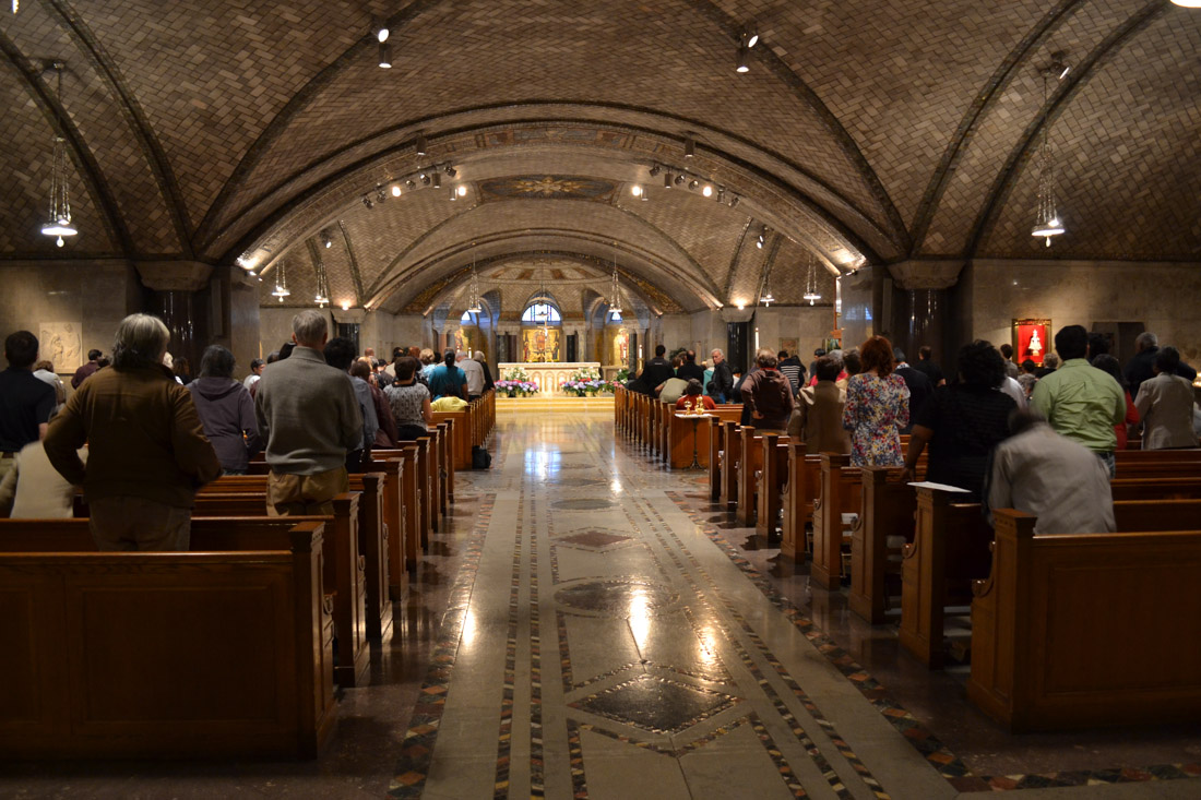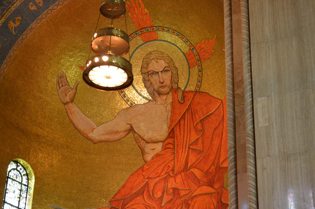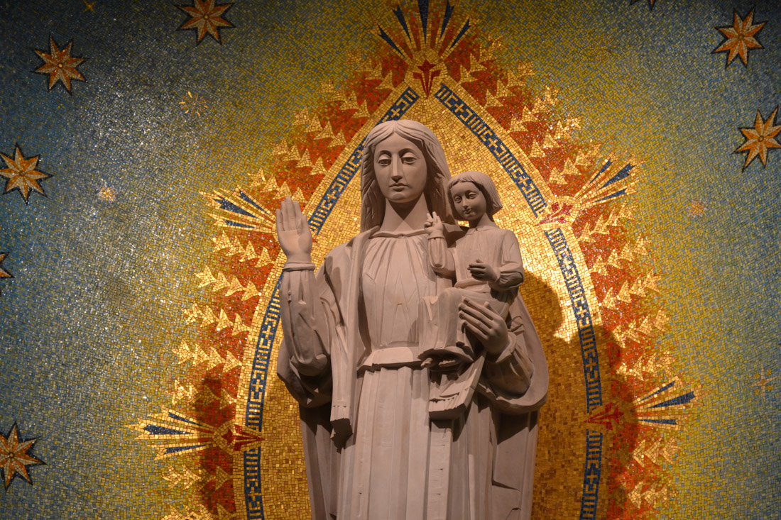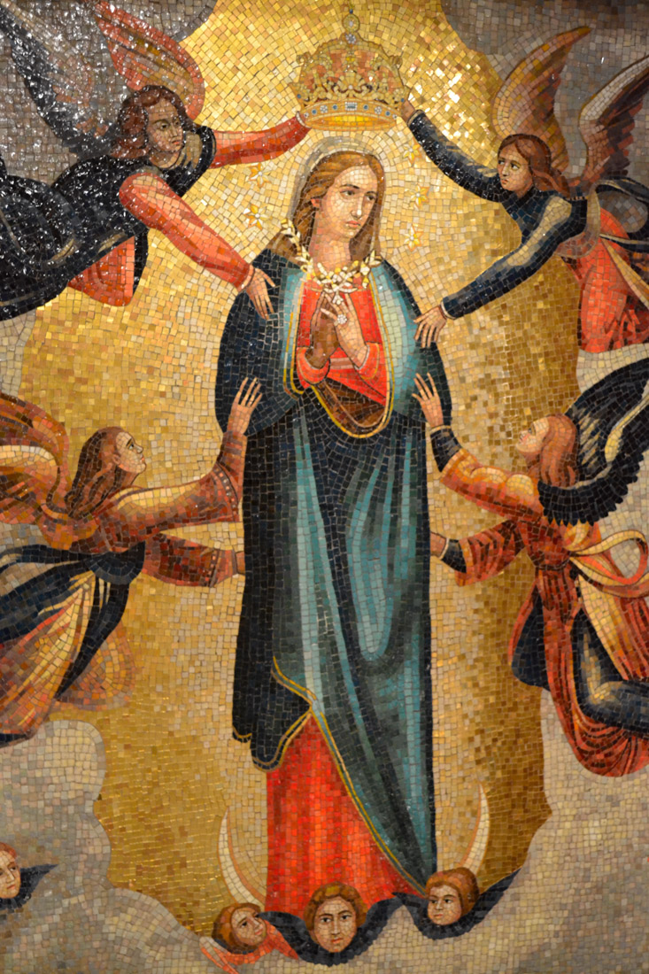Pope Saint Pius X approved the building of a U.S. national shrine in 1913, and construction began in 1920. The crypt level was finished in 1931, and the upper church was completed (and the entire shrine dedicated) in 1959. Blessed Pope John Paul II declared the shrine a minor basilica in 1990. Today, it is home to over seventy chapels and oratories, and houses countless gorgeous mosaics and statues—predominantly dedicated to the Blessed Virgin Mary under her various titles and patronages.