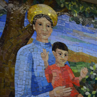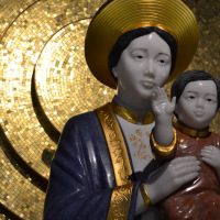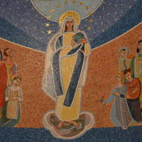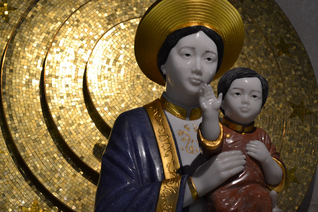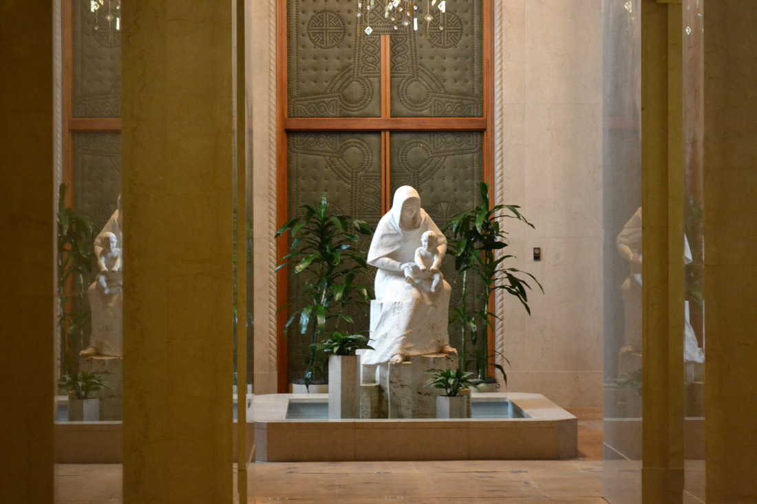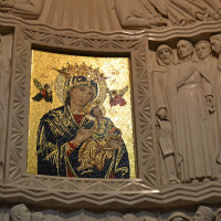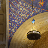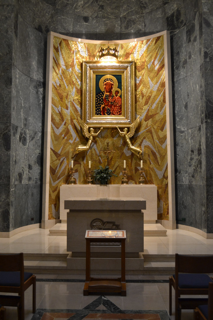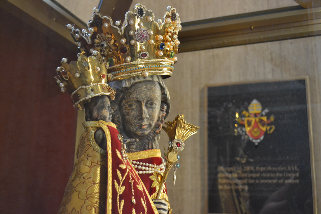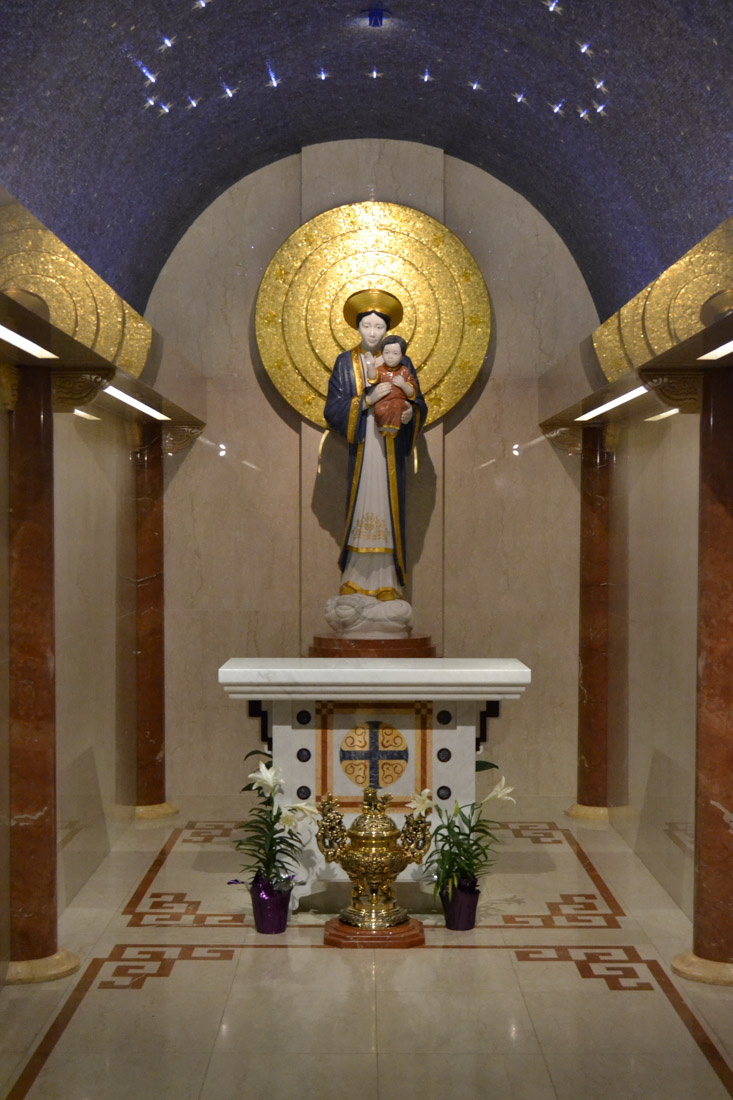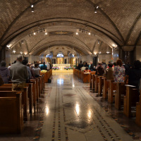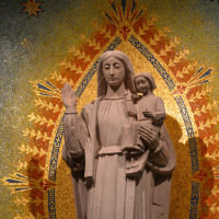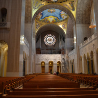 Pope Saint Pius X approved the building of a U.S. national shrine in 1913, and construction began in 1920. The crypt level was finished in 1931, and the upper church was completed (and the entire shrine dedicated) in 1959. Blessed Pope John Paul II declared the shrine a minor basilica in 1990. Today, it is home to over seventy chapels and oratories, and houses countless gorgeous mosaics and statues—predominantly dedicated to the Blessed Virgin Mary under her various titles and patronages.