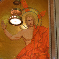 In addition to the various Marian chapels and artwork, there are also statues of many American saints, the tomb of Bishop Thomas Shahan (who founded the shrine), some papal memorabilia, Christological artwork, and more. I took a bunch of photos. Take a look!