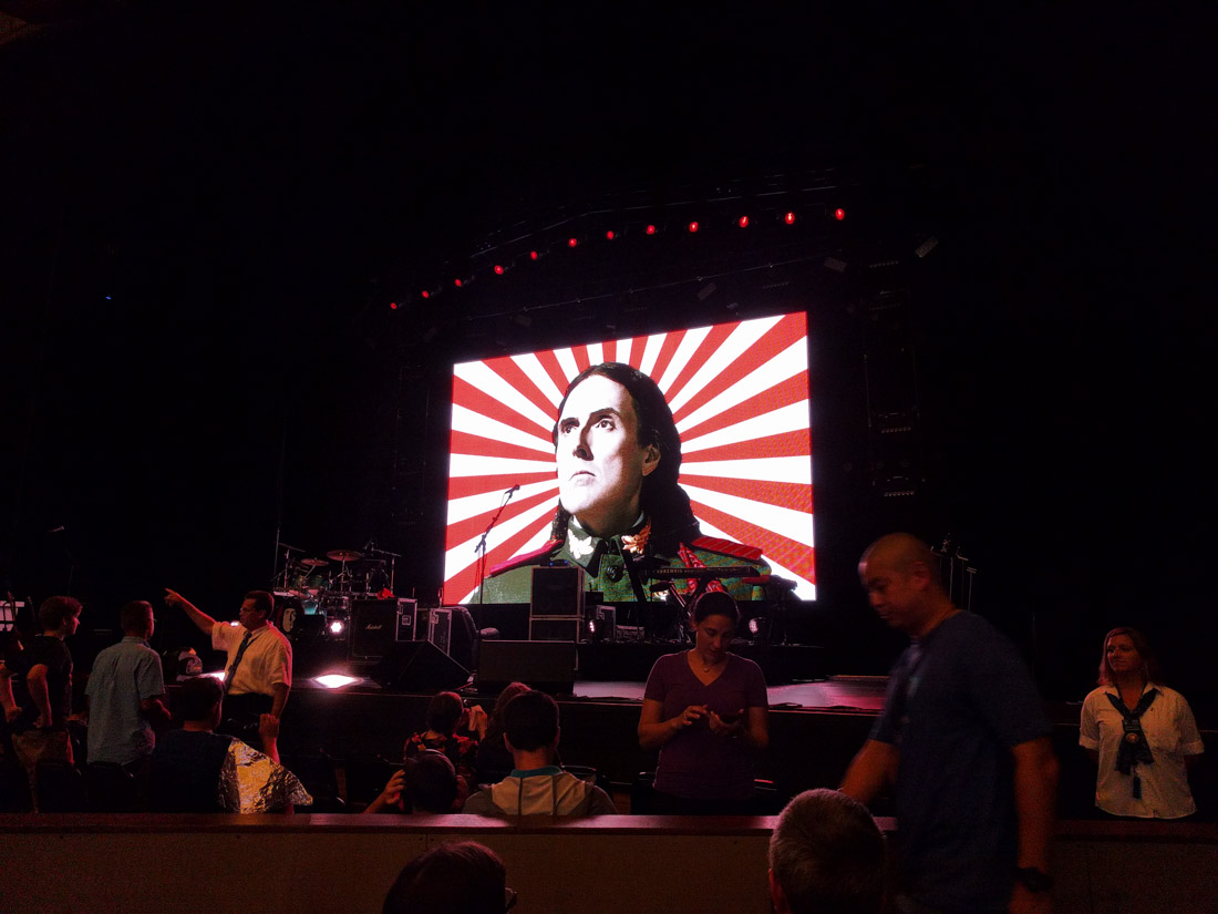 If you have never been to a “Weird Al” concert, I suggest you remedy that as soon as possible. He and his band put on an amazing and hilarious show. They perform his most well-known parody songs, always perfectly capturing the sound and style of the original, while going through constant costume changes and interacting with props (and the audience). During breaks for costume changes, video clips of “Weird Al’s” weirdest stuff—television and film cameos, clips from his own shows and videos, and more—plays on the screen.