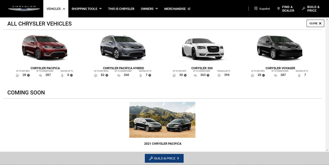 The website is misleading. There are really only two vehicles still sold under the Chrysler name, despite it being one of the namesake brands of Fiat Chrysler Automobiles (FCA). Two.