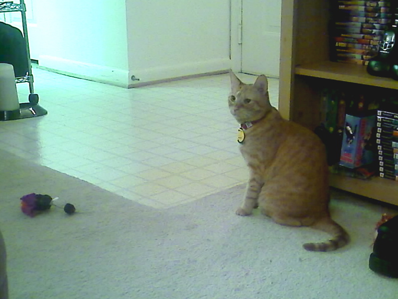We went to work. We lived our lives. When we got home, we looked out on our porch because we sort of expected that cat to be there. She wasn’t. I don’t know about Melissa, but I was relieved. After all, I wasn’t ready to have a pet. I was young, stupid, and irresponsible. We were still newlyweds. But then . . . I heard something. I was probably watching TV or goofing around on my computer. I don’t remember. But I looked out on our porch again a little while later and, damn it, the little orange cat was back. And she had a look on her face that said, “I’m back. Let me in or I will kill you.”