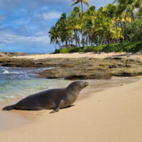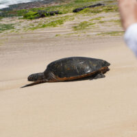 Laniakea Beach is a beach on Oahu’s North Shore that is sometimes called “Turtle Beach.” If you go at the right time and have a bit of luck, you can see endangered green sea turtles (the Hawaiian Honu).
