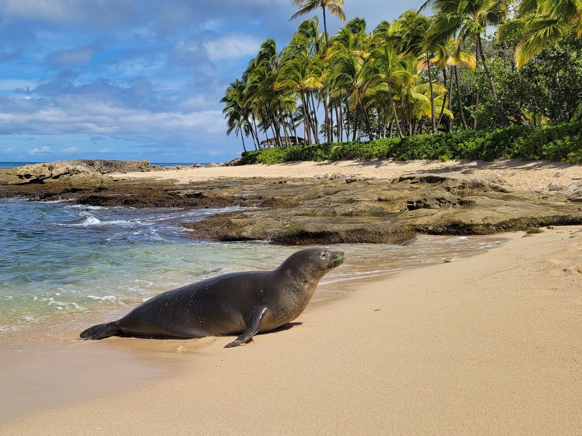 These photos are from a bunch of different places around Oahu, including Ko Olina, Green World Coffee Farm, Kawela Beach, Kualoa Regional Park, Halona Blowhole, Kaimana Beach, Lanikai Beach, and Nu’uanu Pali Lookout. We got to see an endangered Hawaiian monk seal. And chickens.