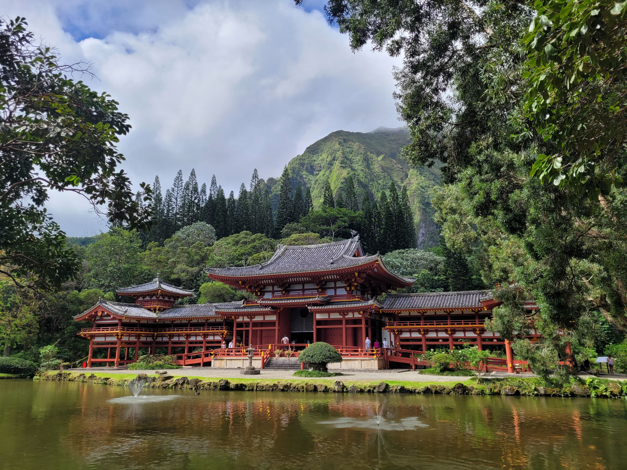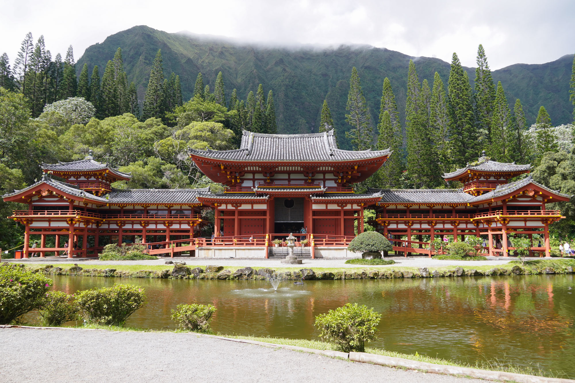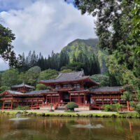 The Byodo-In Temple is a “non-practicing Buddhist temple” in the Valley of the Temples Memorial Park in Kahaluu. It is a scale replica of the over 950-year-old Byodo-In Temple in Uji, Japan.