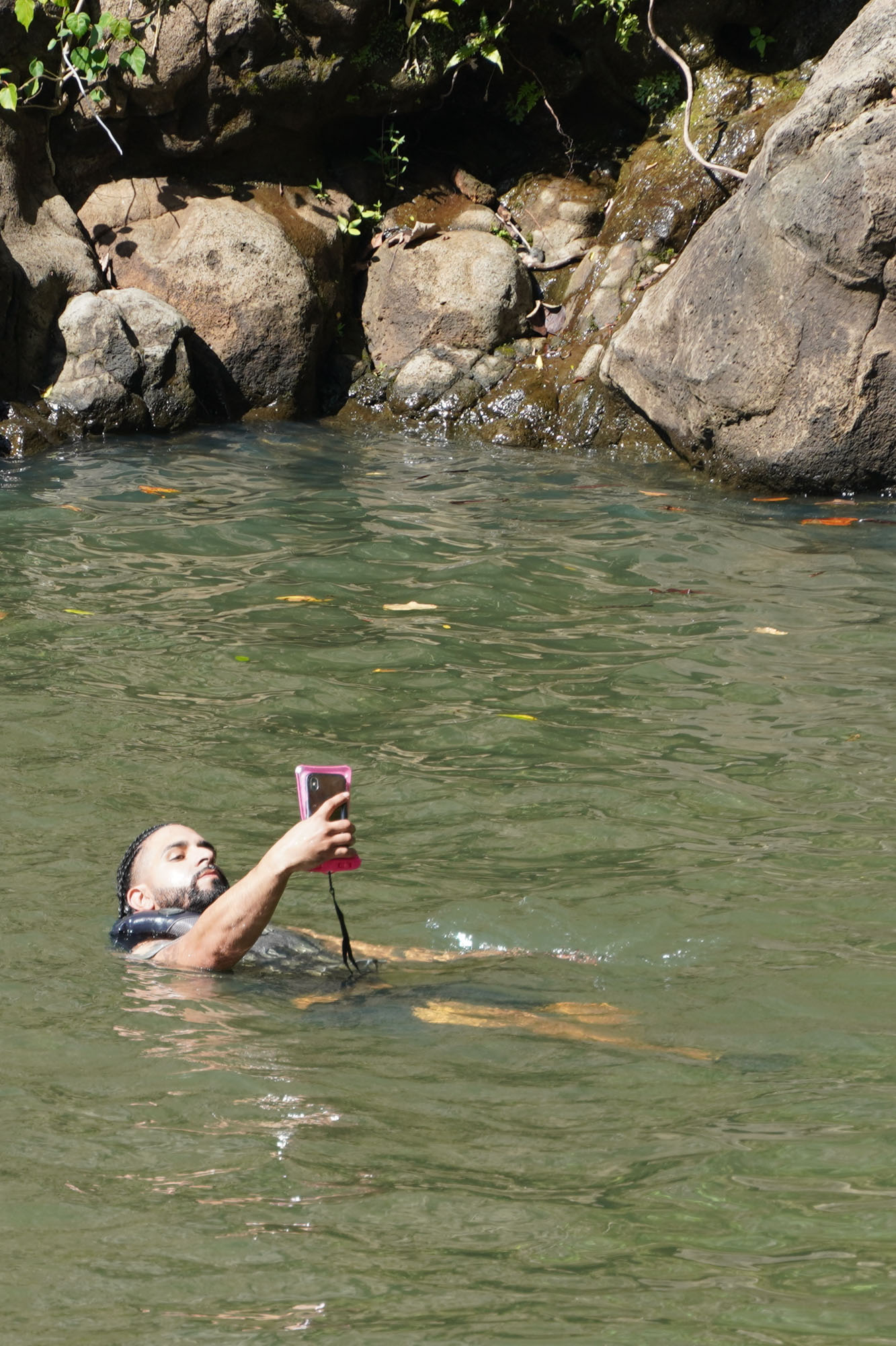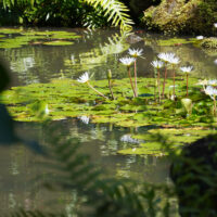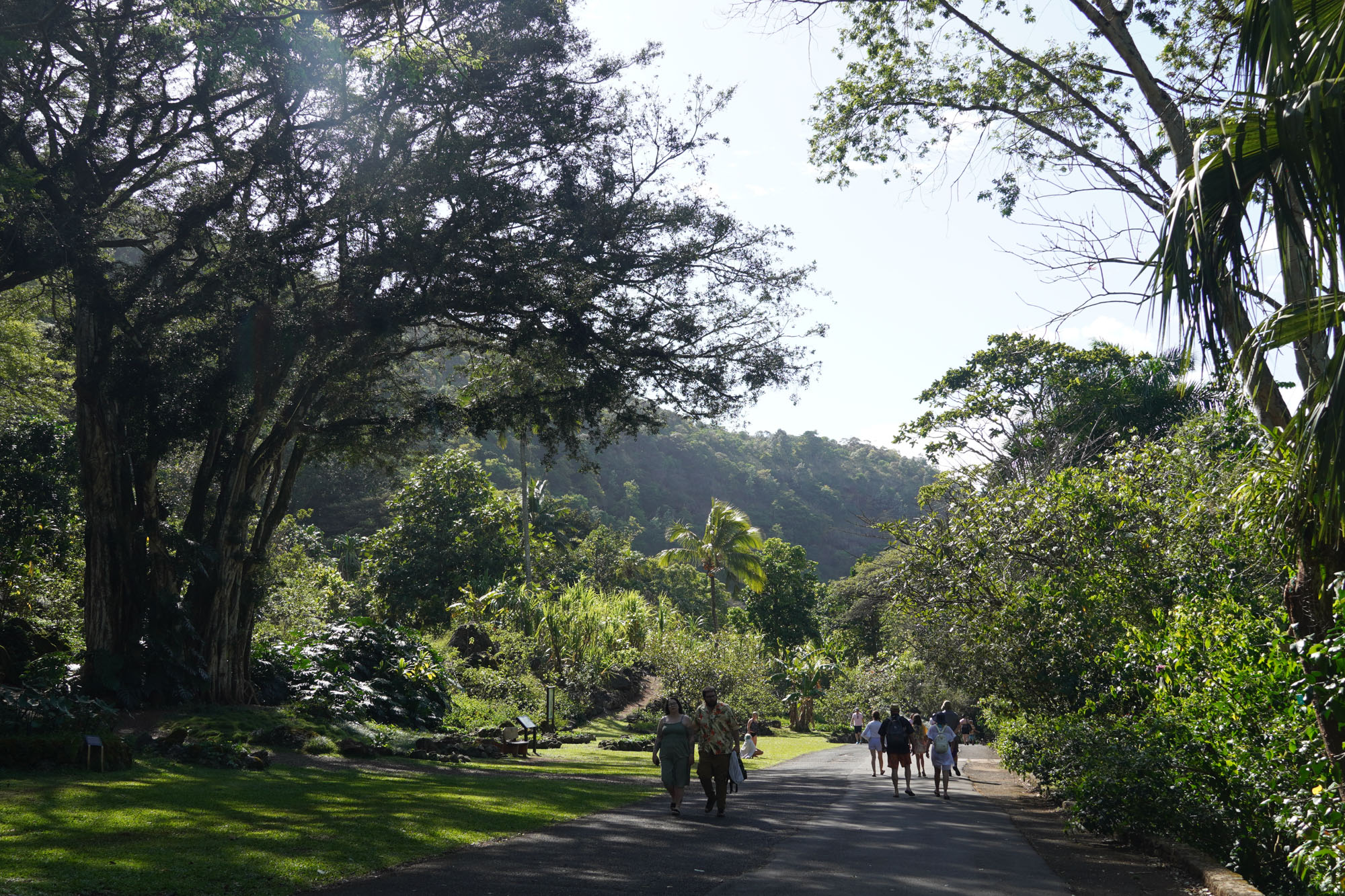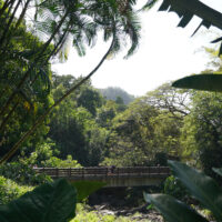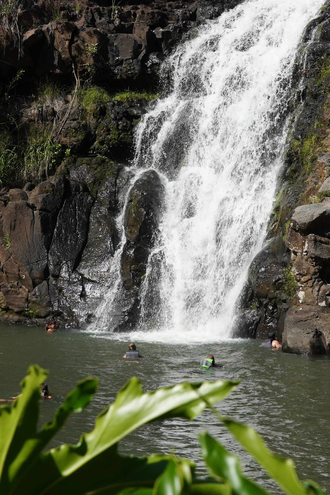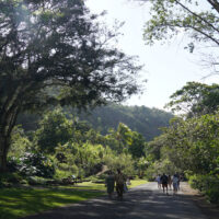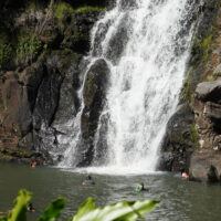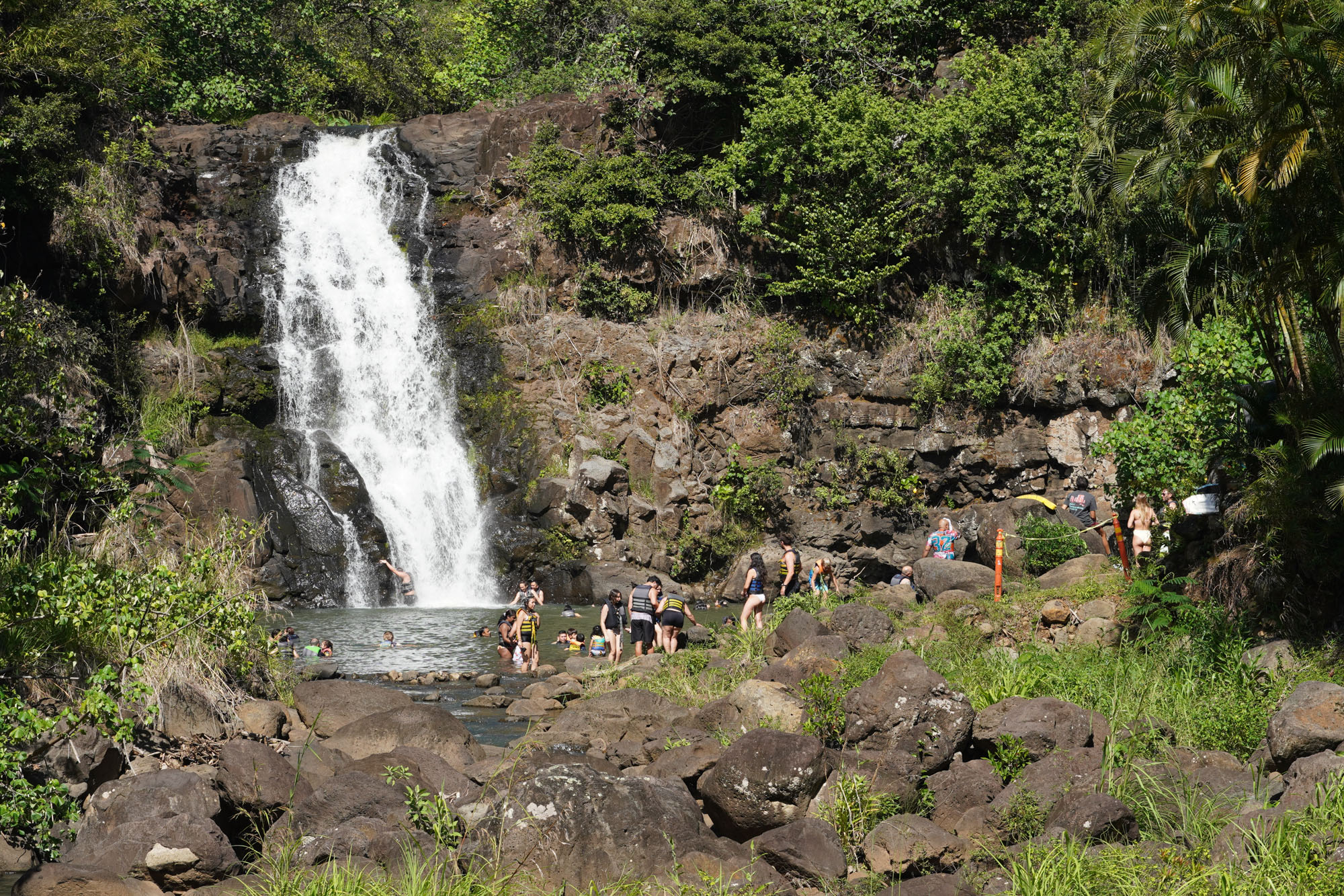 Waimea Valley is a historic area on the North Shore of Oahu. The nature park includes hiking trails, a botanical garden, and a waterfall with a swimming hole.