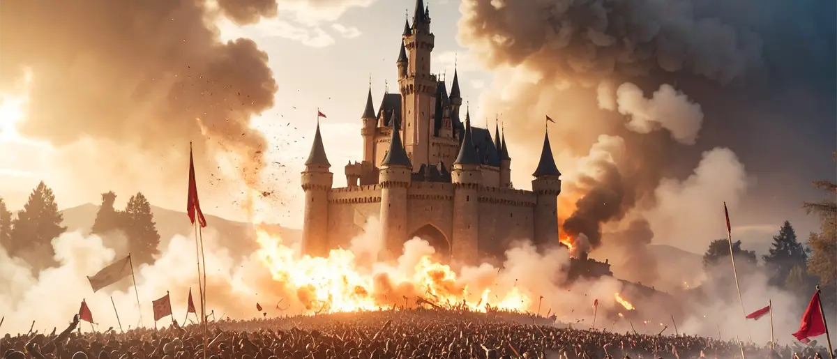 A pro-democracy protest at Disney’s Magic Kingdom escalated into an apparent coup d’état Saturday afternoon. The protest against King Iger, which had been organized on social media by the Disney Freedom Front, began around 10:00 a.m. at the north end of Main Street and soon moved into the King’s Park area outside Cinderella Castle, known informally as “The Hub.”