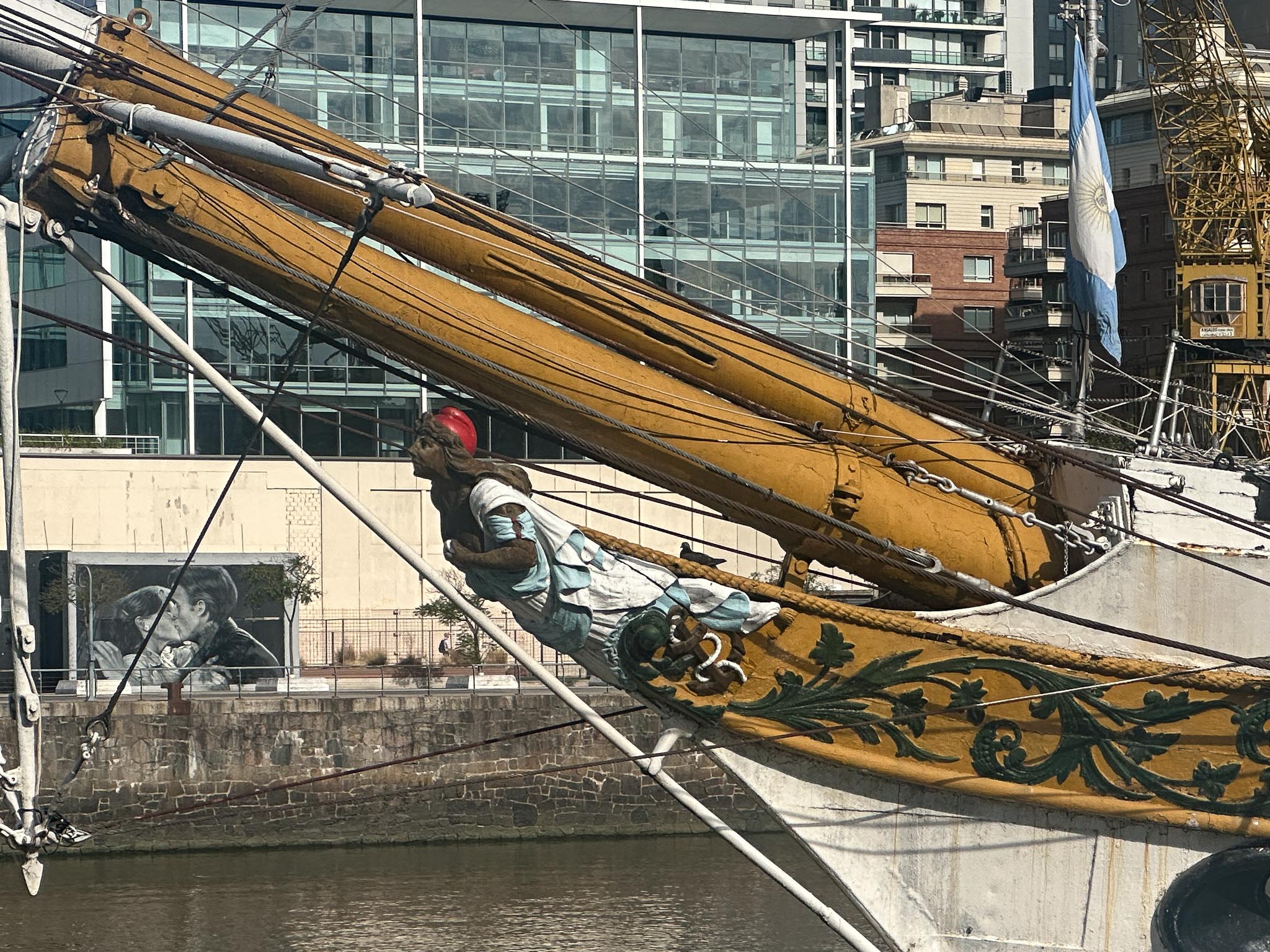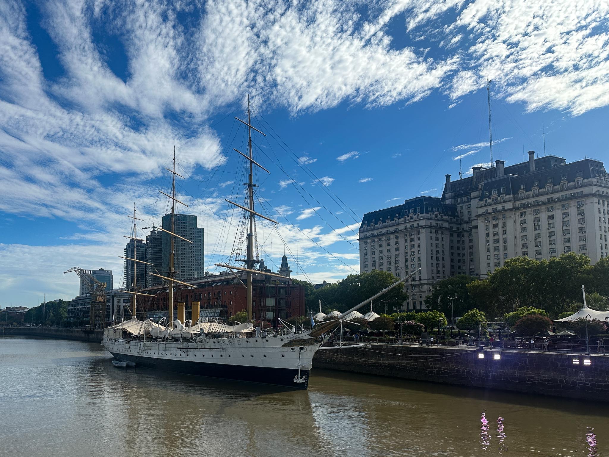 For our unexpected night in Buenos Aires, Argentina, we stayed in the Puerto Madero Waterfront area. That was the city’s original seaport, but it fell into disrepair after the “new port” was built. In the last twenty-five years (or so) it underwent a major urban renewal project and is now home to high-rises, museums, art installations, shops, and more. We also passed through the city again (briefly) on our way home.
