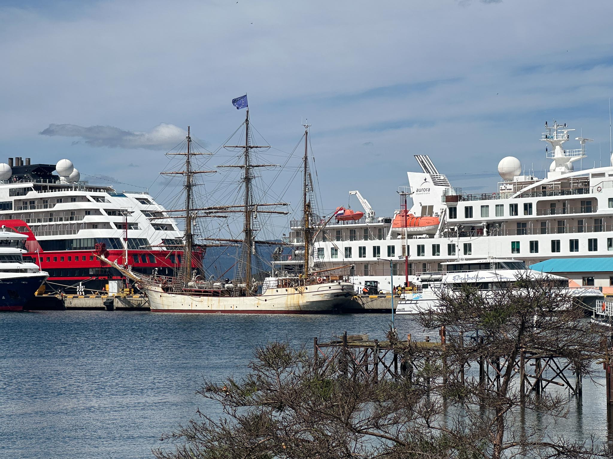 The first three days of the cruise were at-sea days and the next port was Ushuaia, Argentina, at the southern end of South America. So the “catch-up” plan had us spend the night in Atlanta, fly to Buenos Aires for a night, then take a domestic Aerolíneas Argentinas flight from Aeroparque Jorge Newbery in Buenos Aires to Ushuaia-Malvinas Argentinas International Airport in Ushuaia to meet the ship a couple days later.